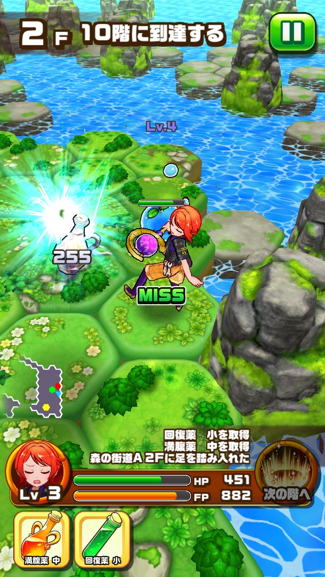 ダンジョンはプレイするごとに地形が変化します。1度クリアしたステージはなかなか再度プレイしなくなってしまいますが、これなら何度同じステージをプレイしても新鮮な感覚で楽しむことができますね。
