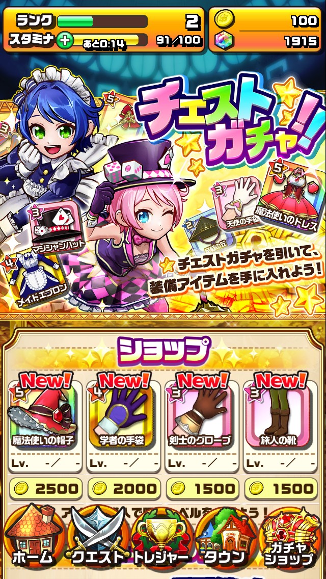 いまやRPGゲームには定番のガチャショップが本作にも存在します。「夢幻のラビリズ」はコスプレRPGですので、ほかのアプリと比べても、ガチャでゲットできるアイテムは非常に充実しています!
