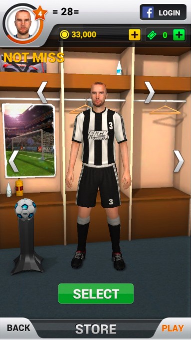 ゲーム開始前の選手をタップすると、ユニホームや選手のフェイスを自由に変更することができます。ボールの柄もお好みで変えることが可能。言語は基本英語表示となりますが、シンプルなゲームなので特に支障はなく楽しめることでしょう。