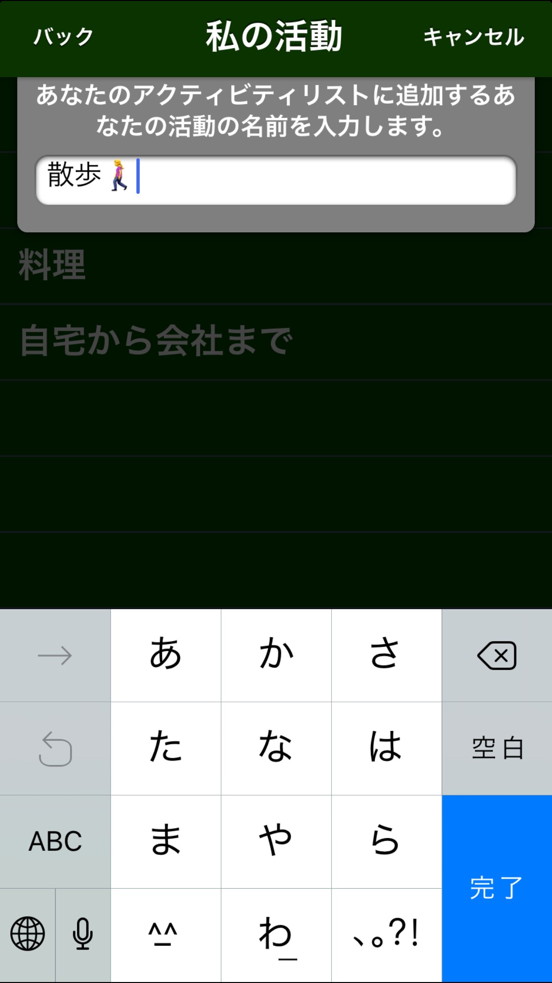 2 活動内容をタップすると時間の計測が開始します。(画面はホーム画面に変わります)