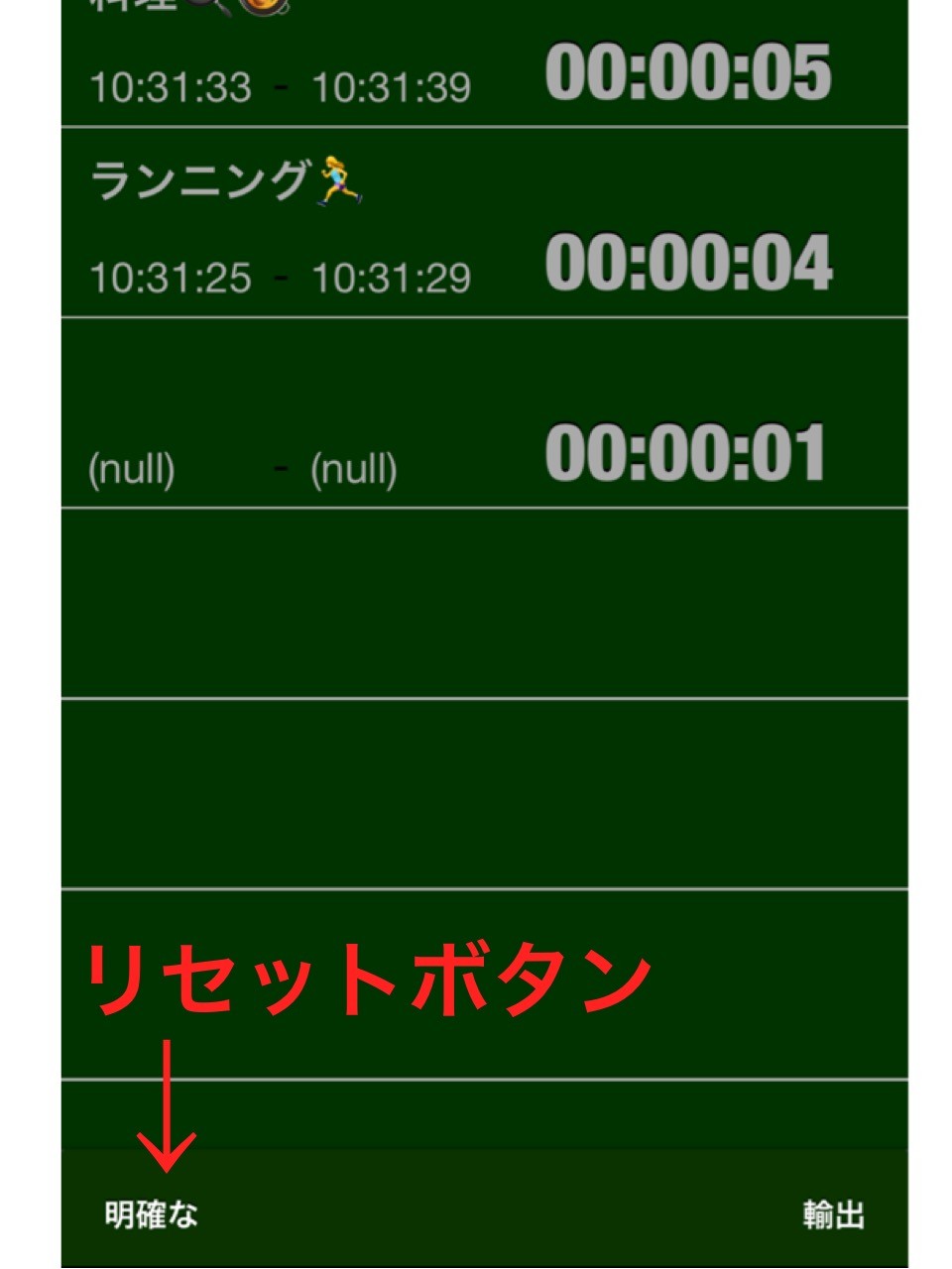 そして、歴史画面右下に「明確な」というボタンがあります。明確という言葉から詳しい記録情報かなと思いきや、これは「リセット」ボタンです! うっかりタップしてしまうと、記録がクリアされてしまうので注意してください! ここさえ分かっていれば使いにくいことはないと思いますよ。