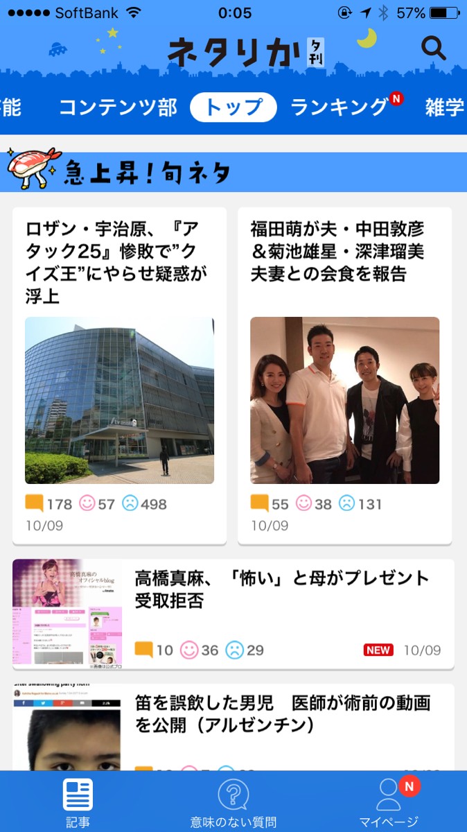 ヤフー株式会社による無料芸能ニュースアプリ、「ネタりか」。芸能ニュースを中心に、恋愛や雑学のジャンルまで毎日800本以上配信されています。「ネタりか」はWEB版も人気ですが、注目度の高いニュースが一度にチェックできる“スペシャルランキング”など、アプリ限定メニューも多数用意されているので、アプリ版がおすすめ。サクサク読み進められるところもアプリの魅力です。さらに配信されるニュースは、ちょっとした世間話のネタになるような面白いニュースばかり!速報の芸能ゴシップニュースだけでなく、ブログやインスタをピックアップした芸能人ニュースも続々配信されるので、暇つぶしにピッタリです。通勤時間や通学時間のお供に、ぜひ覗いてみてください。