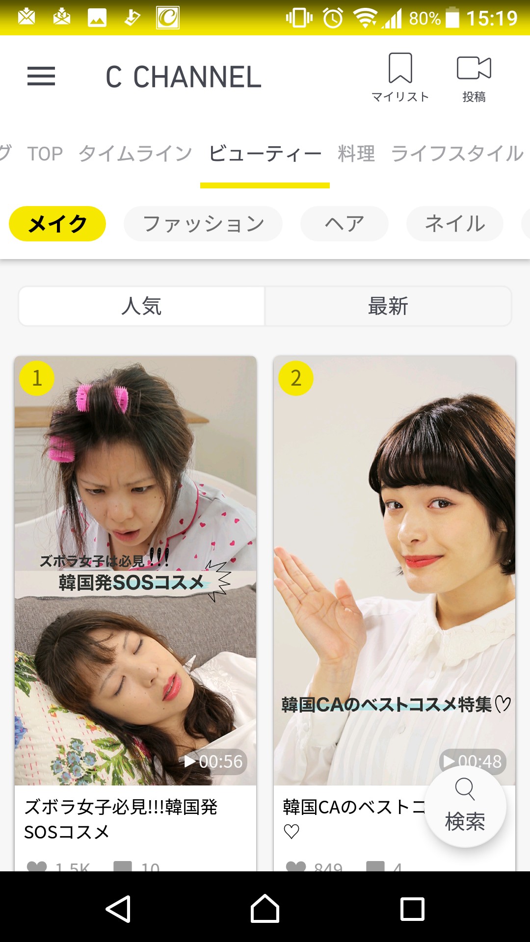 2、C CHANNEL 1分無料動画 ヘア・ネイル・レシピなど