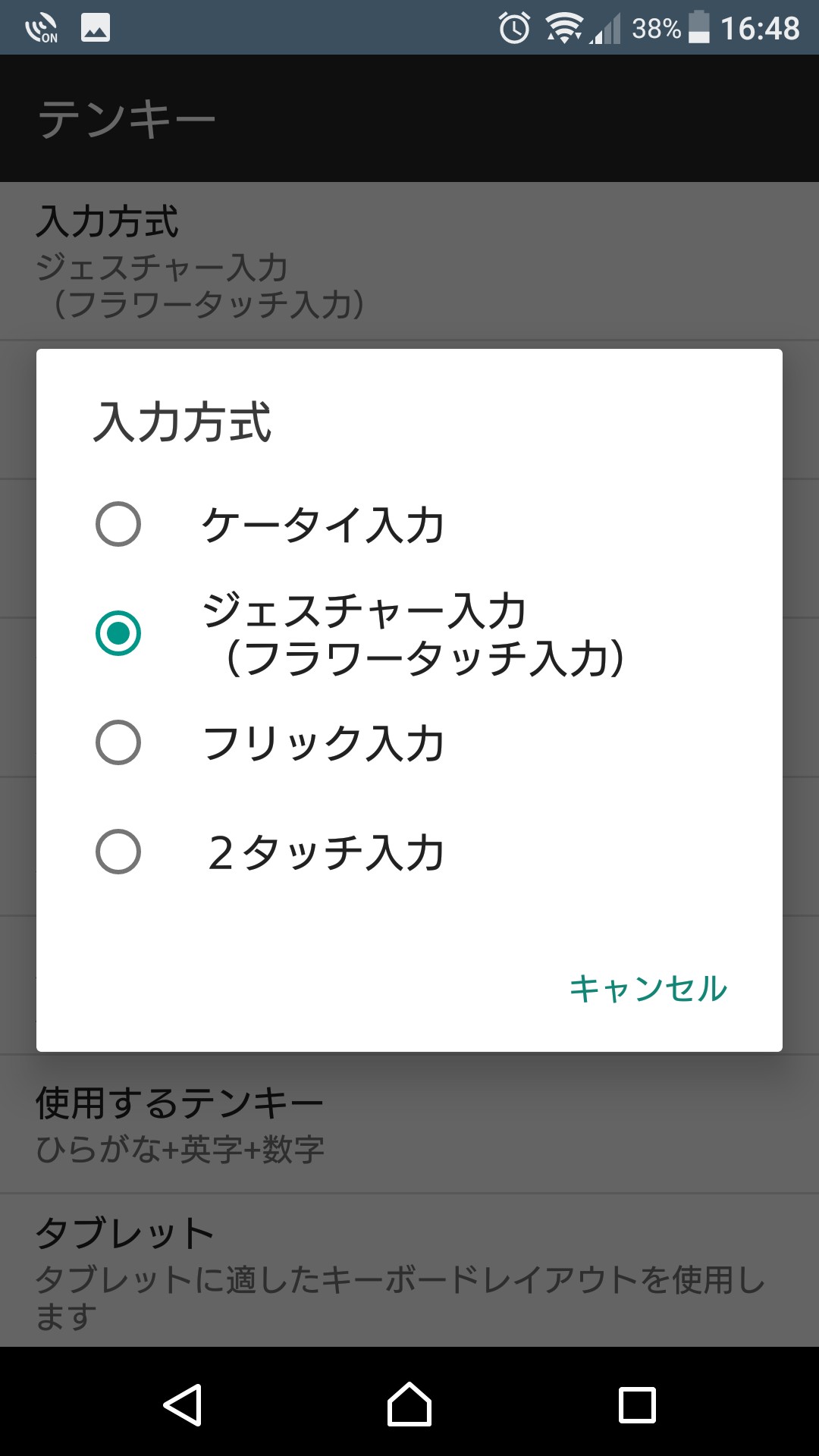 入力方式はフリック入力など4種類から選択可能。単語の予測は手堅く、数文字入力しただけで早々にこちらの意図していない候補を出してくることもありません。顔文字、絵文字などには取り立てて対応していませんので、顔文字は使わない、変な予測変換でイライラしたくないという場合には良いチョイスでしょう。