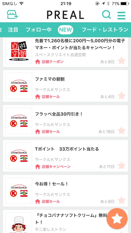 「PREAL」は全国で使えるお得なクーポン情報が、いち早くわかるクーポンアプリです。