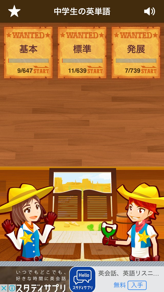 自信がない単語にはチェックマークを付けておくとレベル選択の次の画面の[チェック]に登録されていきます。