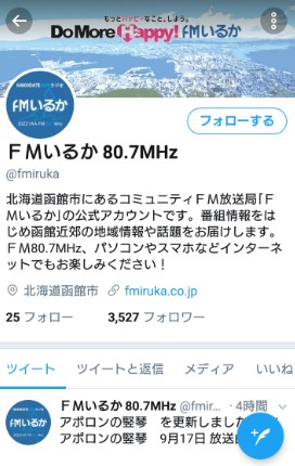 [Twitter]では、コミュニティFMラジオ放送局『FMいるか』のSNSコミュニティに参加することもできます。