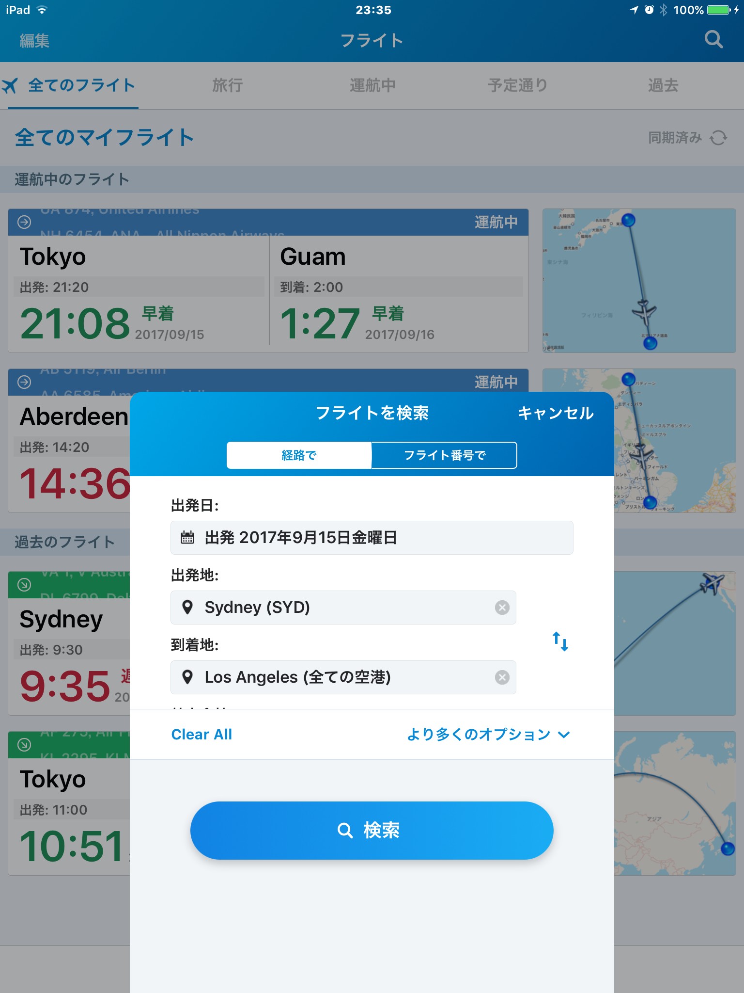 フライトトラッカーは、選択肢を沢山用意してくれます。直行便で行くのか、乗り継ぎ便で行くのか、時間帯などを考慮して、出発便を選びましょう。飛行機の予約ができたら、予約便を「マイフライト」に登録すると、いつでもスマホから確認することが可能になります。