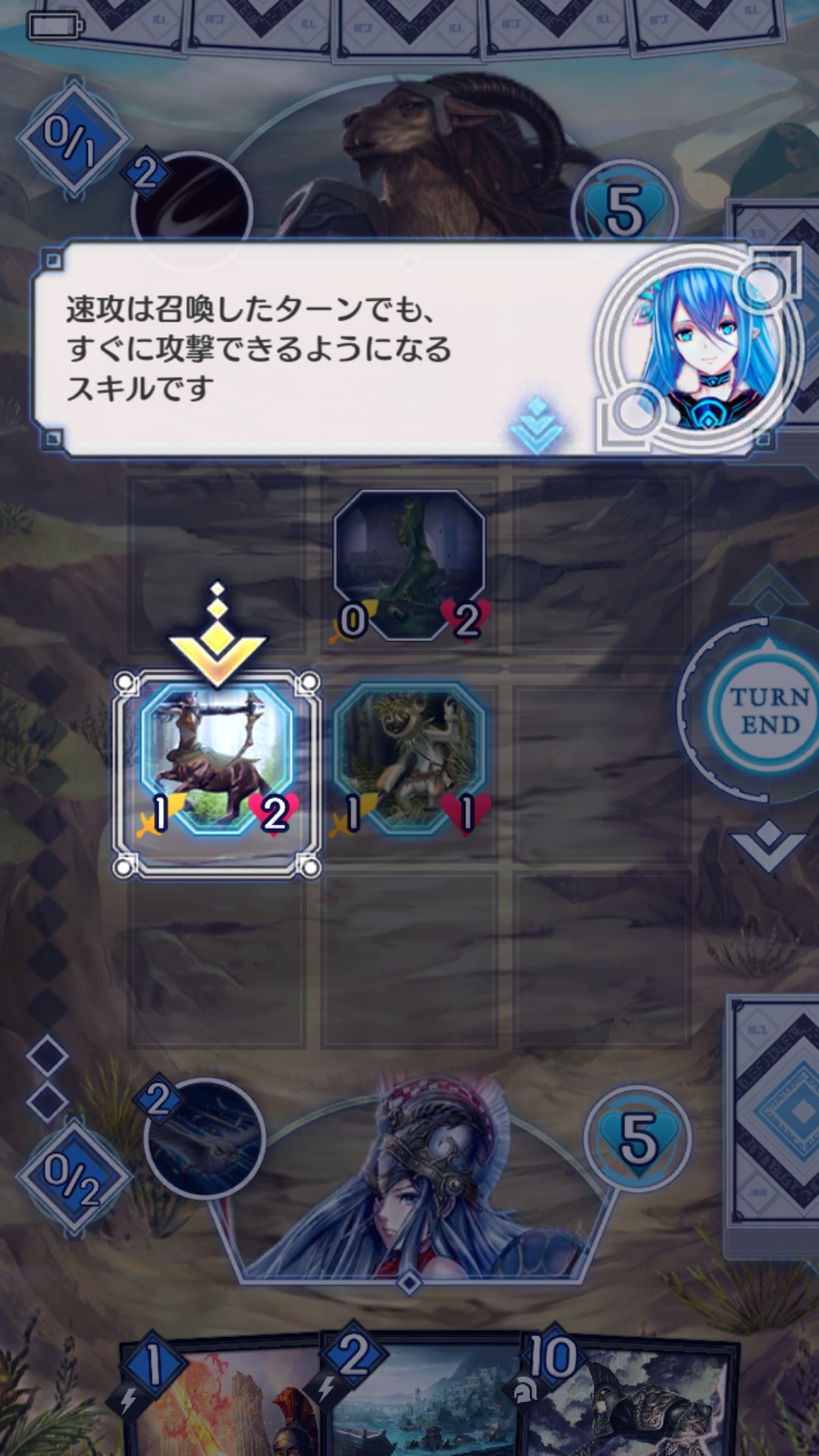 召喚するためにはマナが必要で、最初は1しかないためいきなり強いカードを出すことはできません。