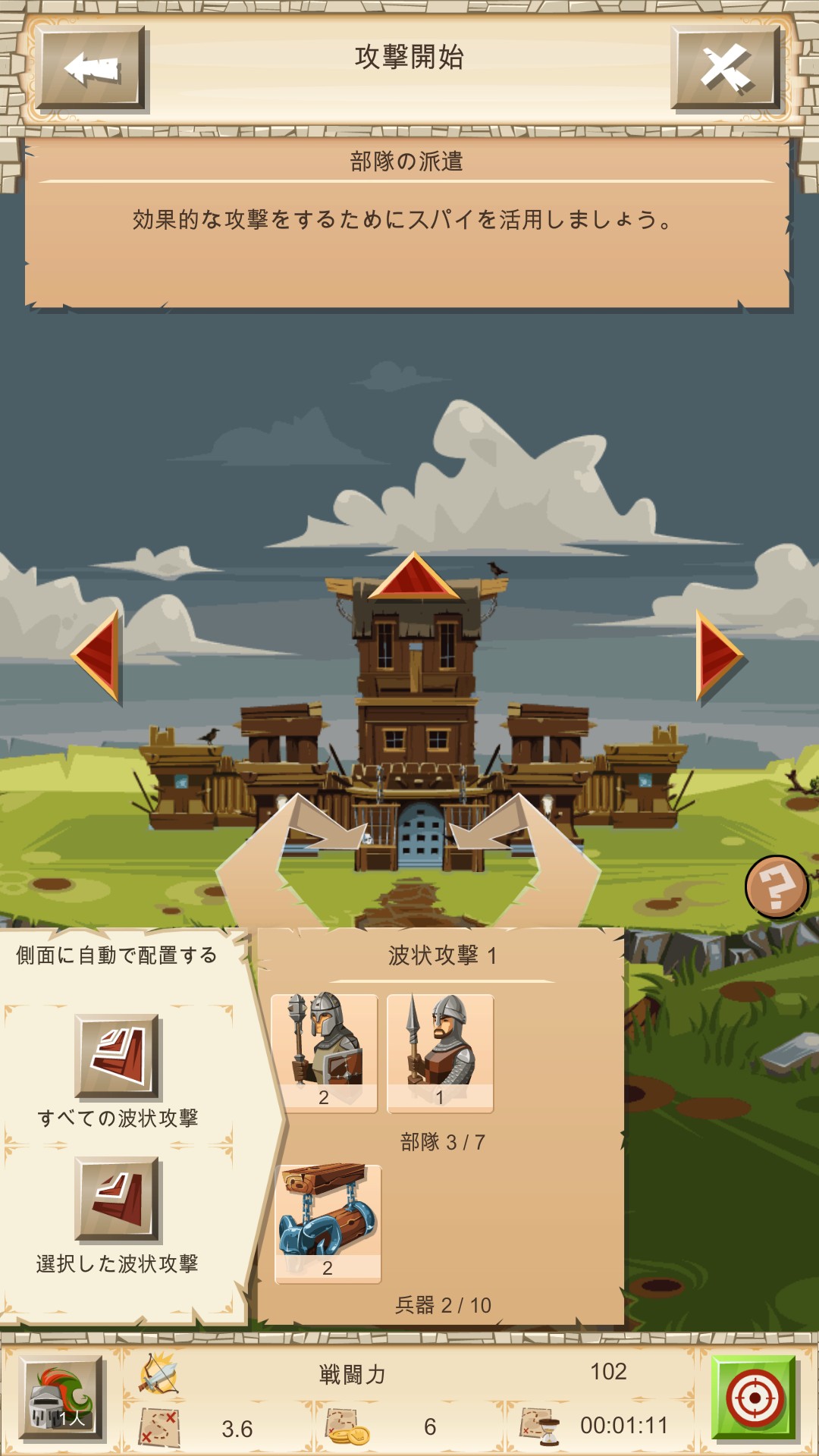 泥棒領主のときも同じですが他国へ攻めるときは正面と側面それぞれに兵士を配置でき、どちらを重視するかによって勝利する確率が違ってきます。