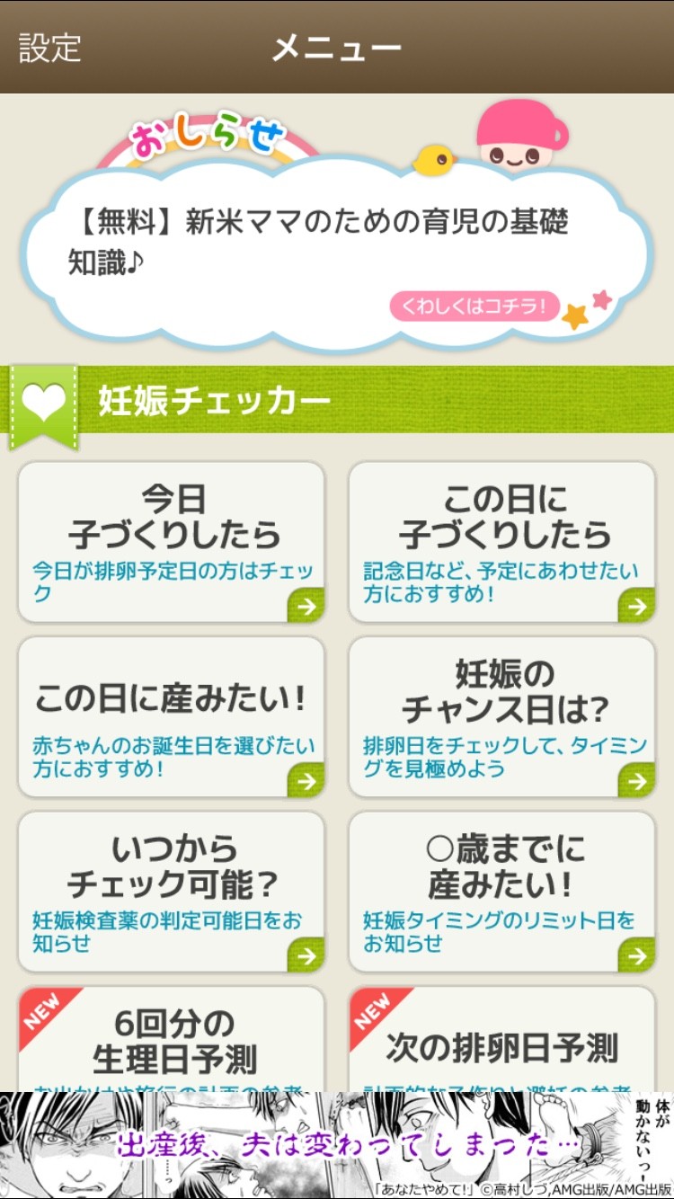「子作りチェッカー 妊娠から出産、排卵日から子どもができやすい時期などを簡単計算」で計画的な出産を