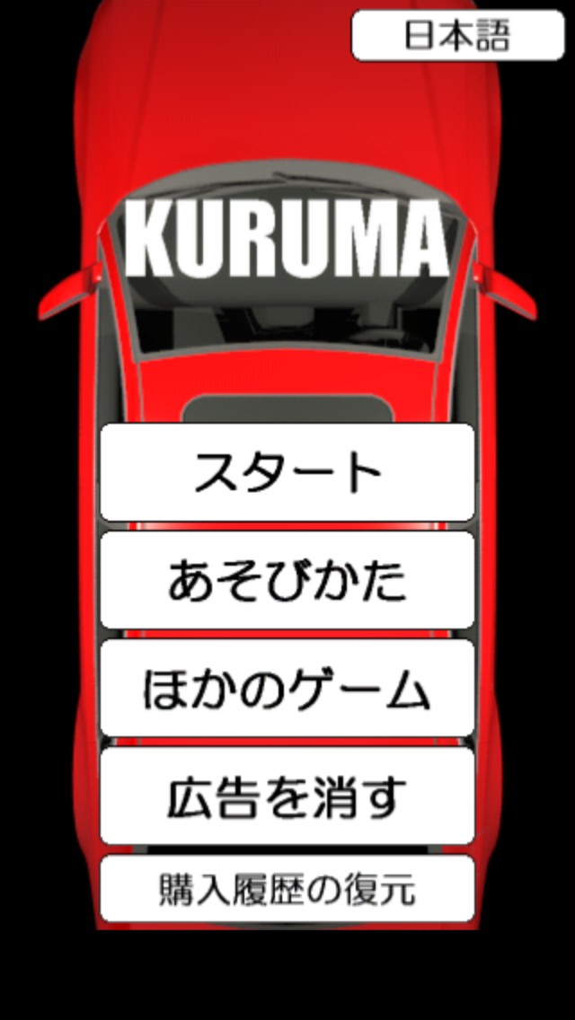 アプリを起動して、スタートボタンを押すと、タイトルにあるKURUMA(車)のある密室からいきなりスタートします。説明は全くありません。