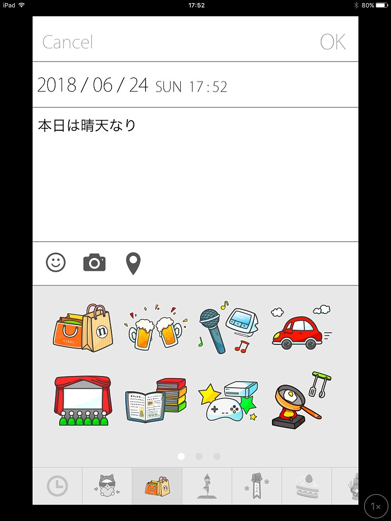 ホーム画面に表示される日記の分量が4行ですから、最初はそれに収まる範囲で書くことをおすすめします。文字の色や絵文字を使って楽しい日記にしてみましょう。