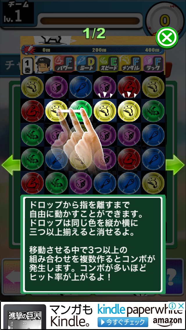 このアプリは、野球ゲームの攻撃をパズルゲームで行う、