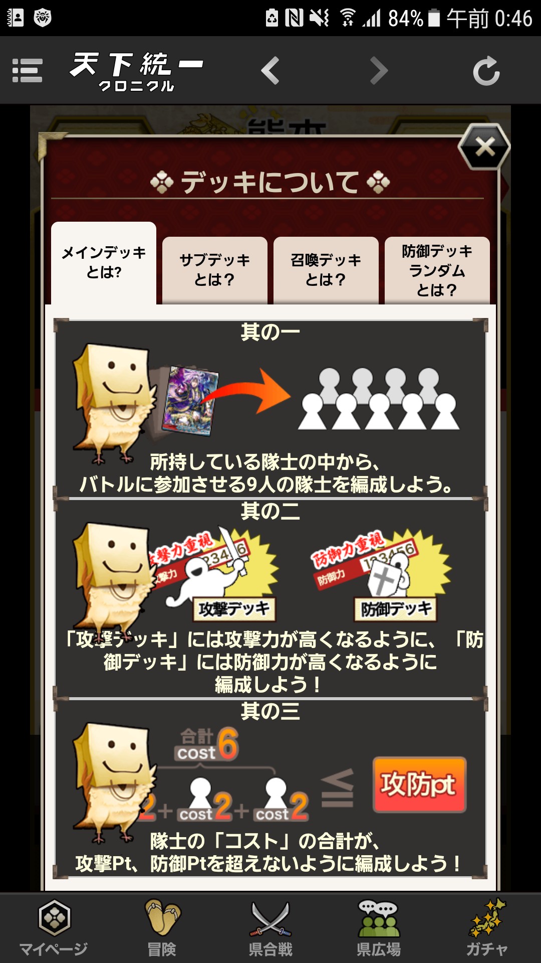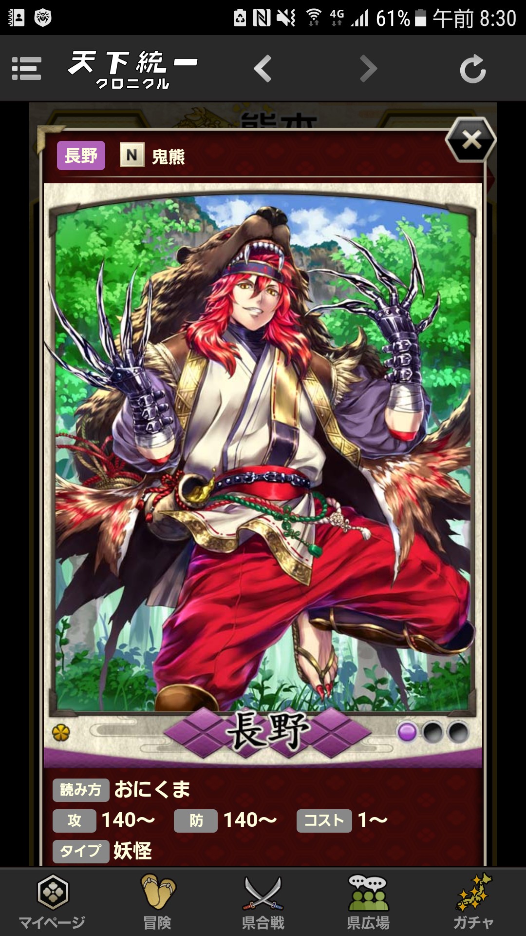 天下統一クロニクルとは、愛着のある都道府県に所属し、他の都道府県とガチャや冒険で手に入れた様々なご当地隊士(カード)を合戦で戦わせて、県ランキング順位を競い合い全国1位を目指すゲームです。
