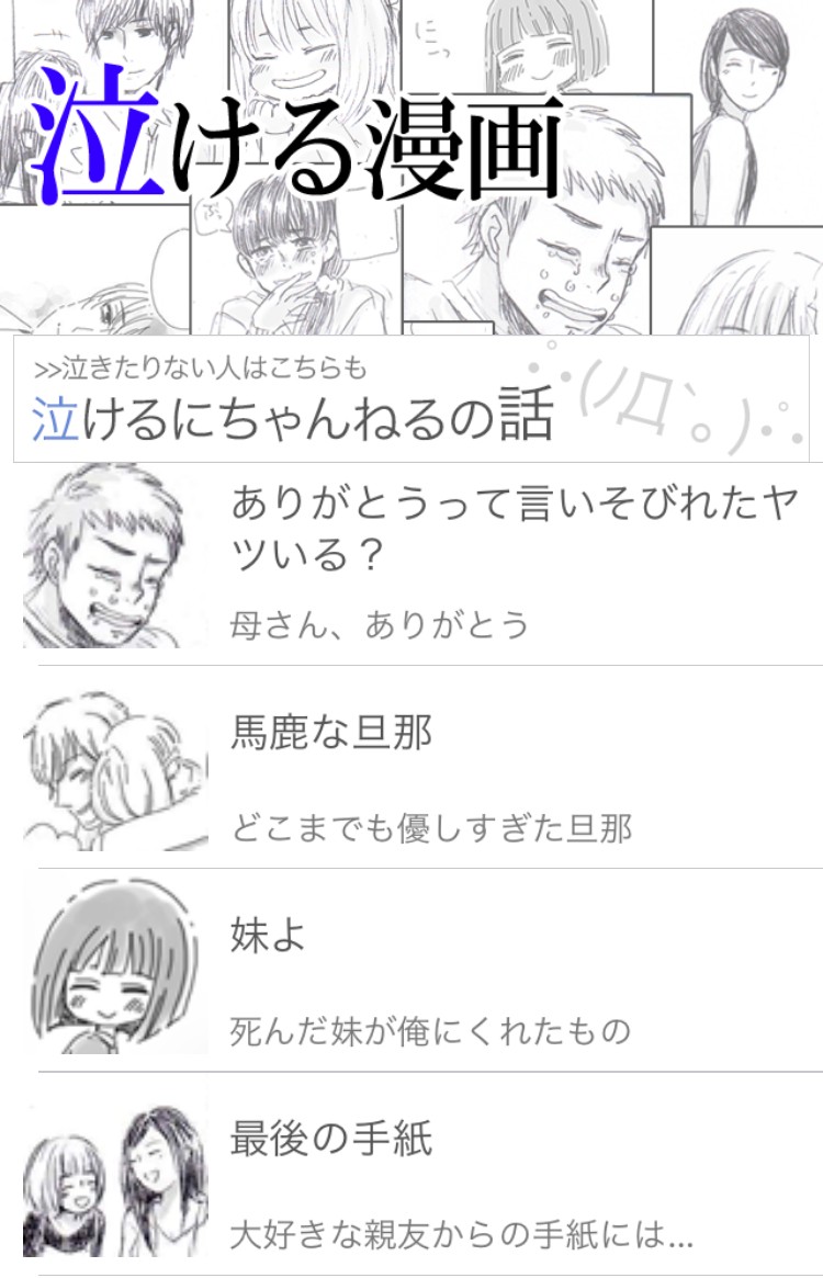「泣ける漫画【無料】 –にちゃんねるの泣ける話をマンガ化しました!」をダウンロードしよう!