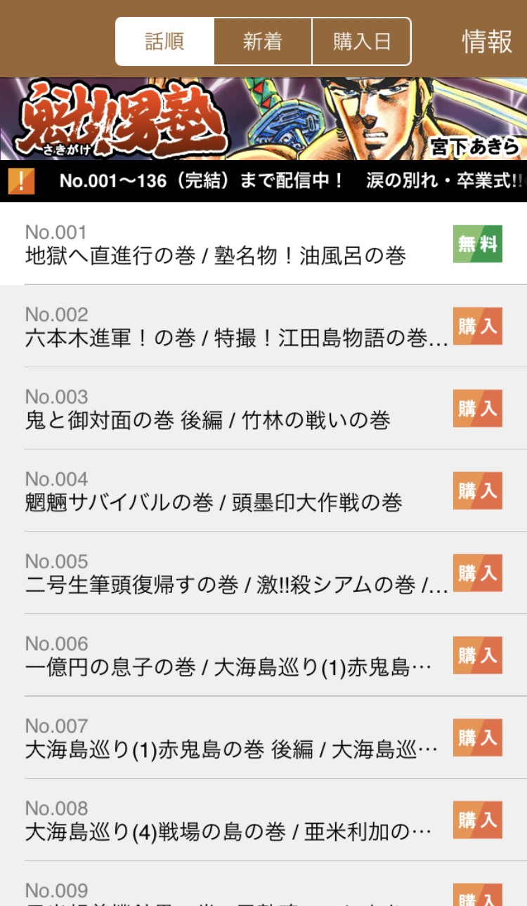 とても有名なコミックスである【魁!!男塾】を簡単に読めるアプリです。