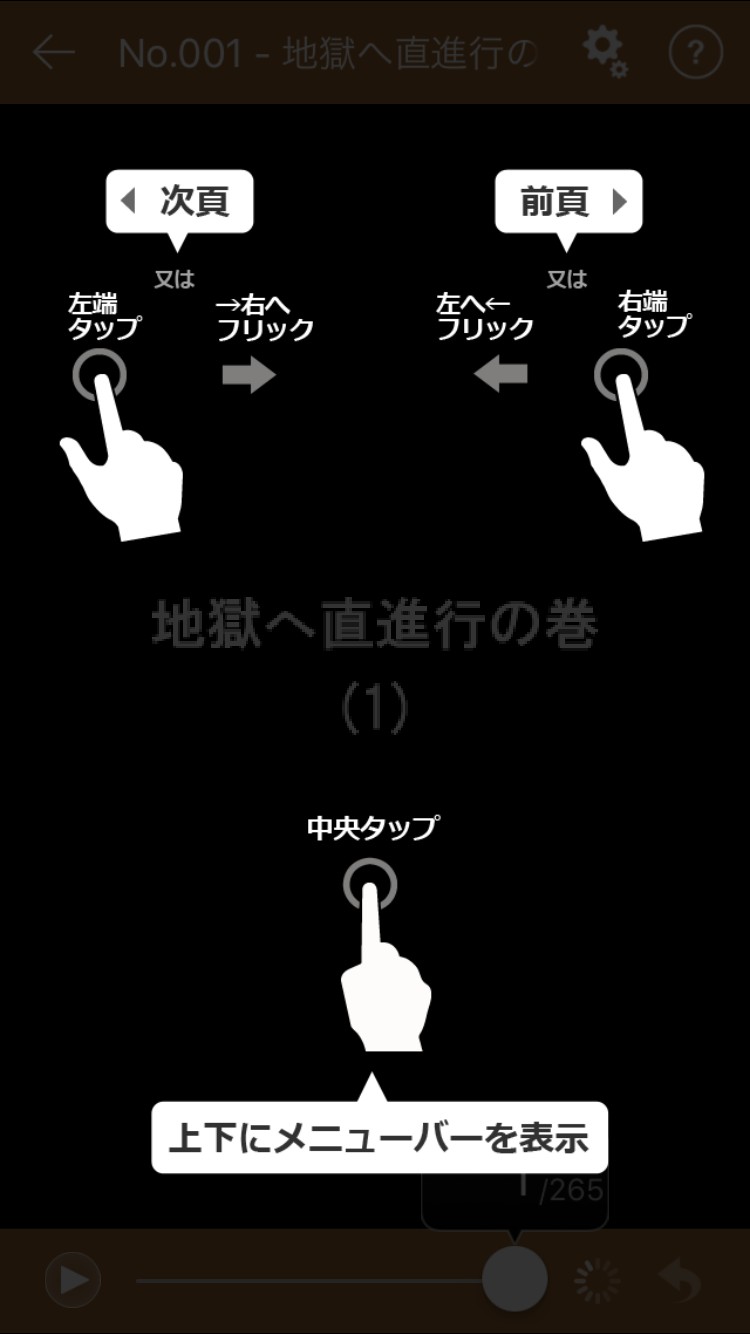 「タイプ2」では、ページをめくる時は任意の場所をタップか右へフリック、