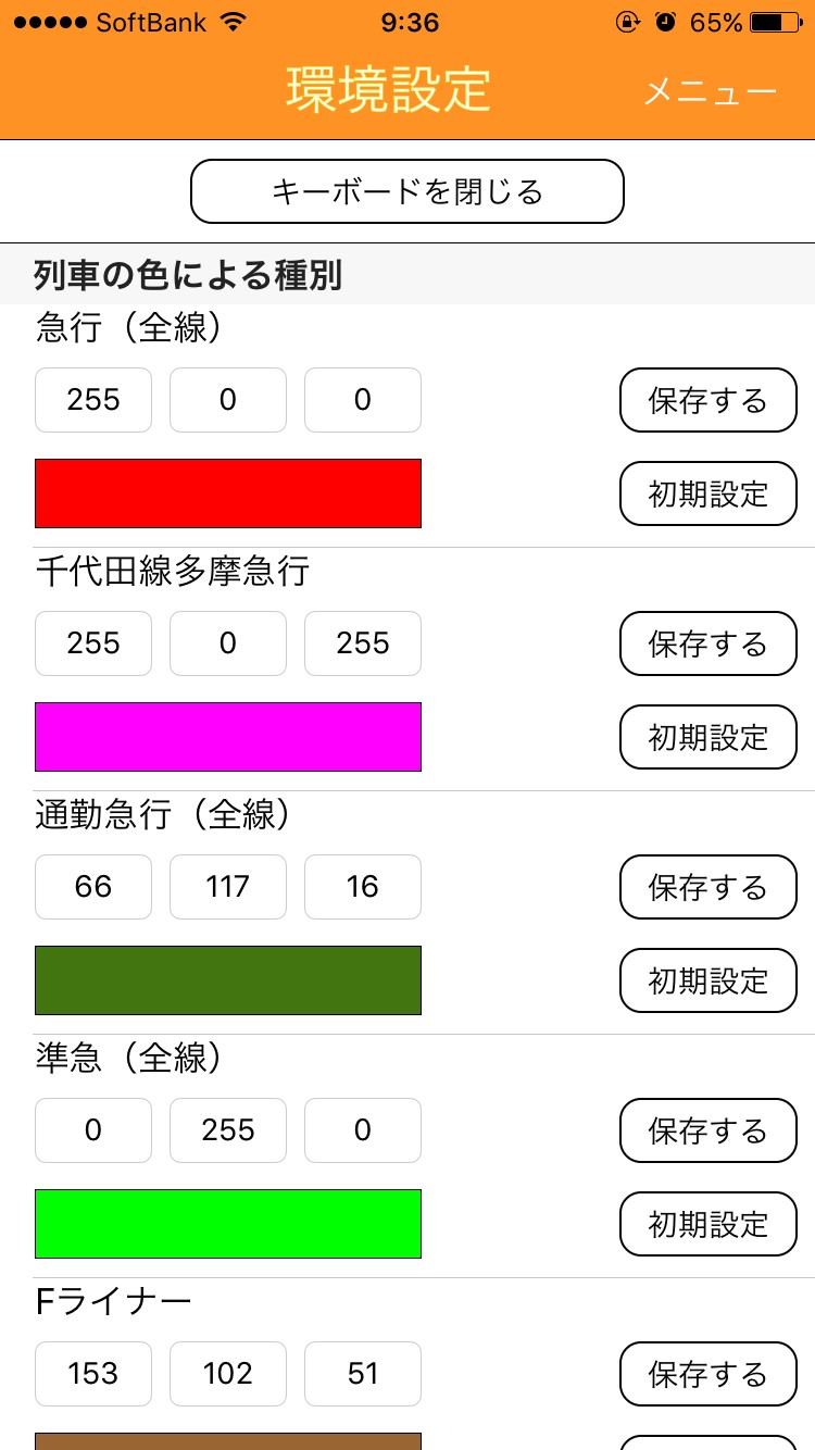 そういった複雑な路線で見やすさを求める方は、設定画面から自分好みの色に急行の色をカスタマイズしましょう。