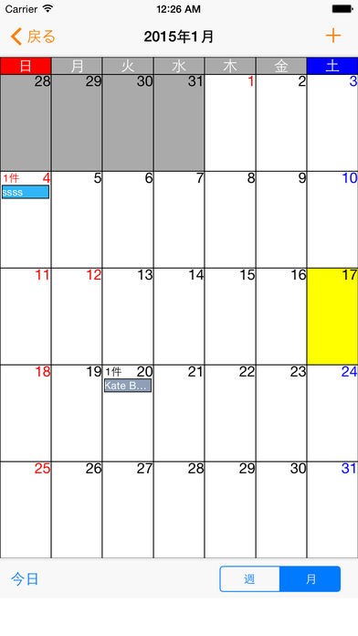 1.スケジュール管理:標準のスケジュール表は見やすいカレンダーのタイプで週と月の各画面で表示。基本的なものです。予定を入力、更新、削除など一般的機能。