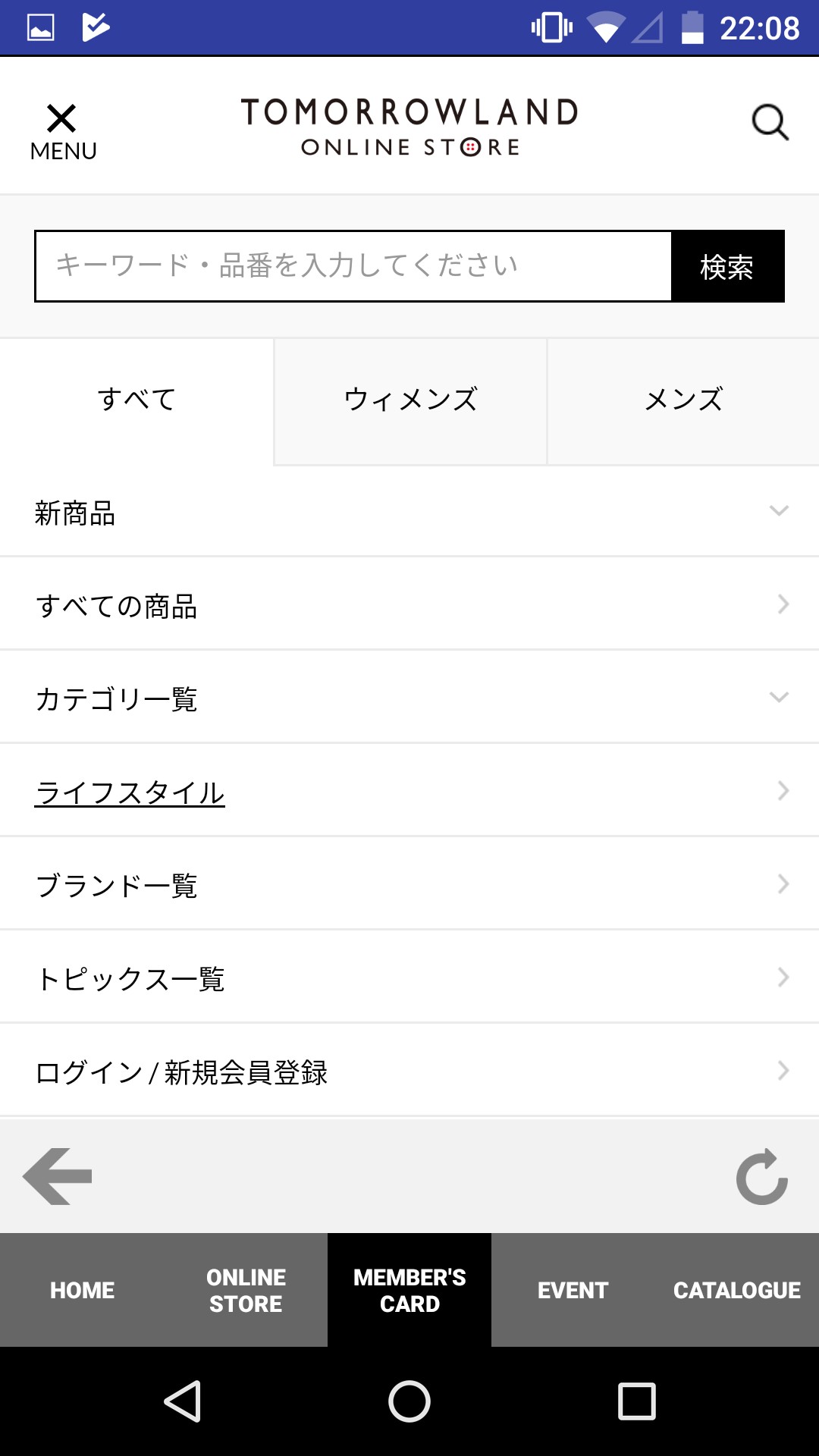 商品検索は、全ての商品、新商品、ライフスタイル別、ブランド別などで、絞り込めますので、どこから探せば良いか分からなくても、お気に入りブランドまで、たどり着けそうです。