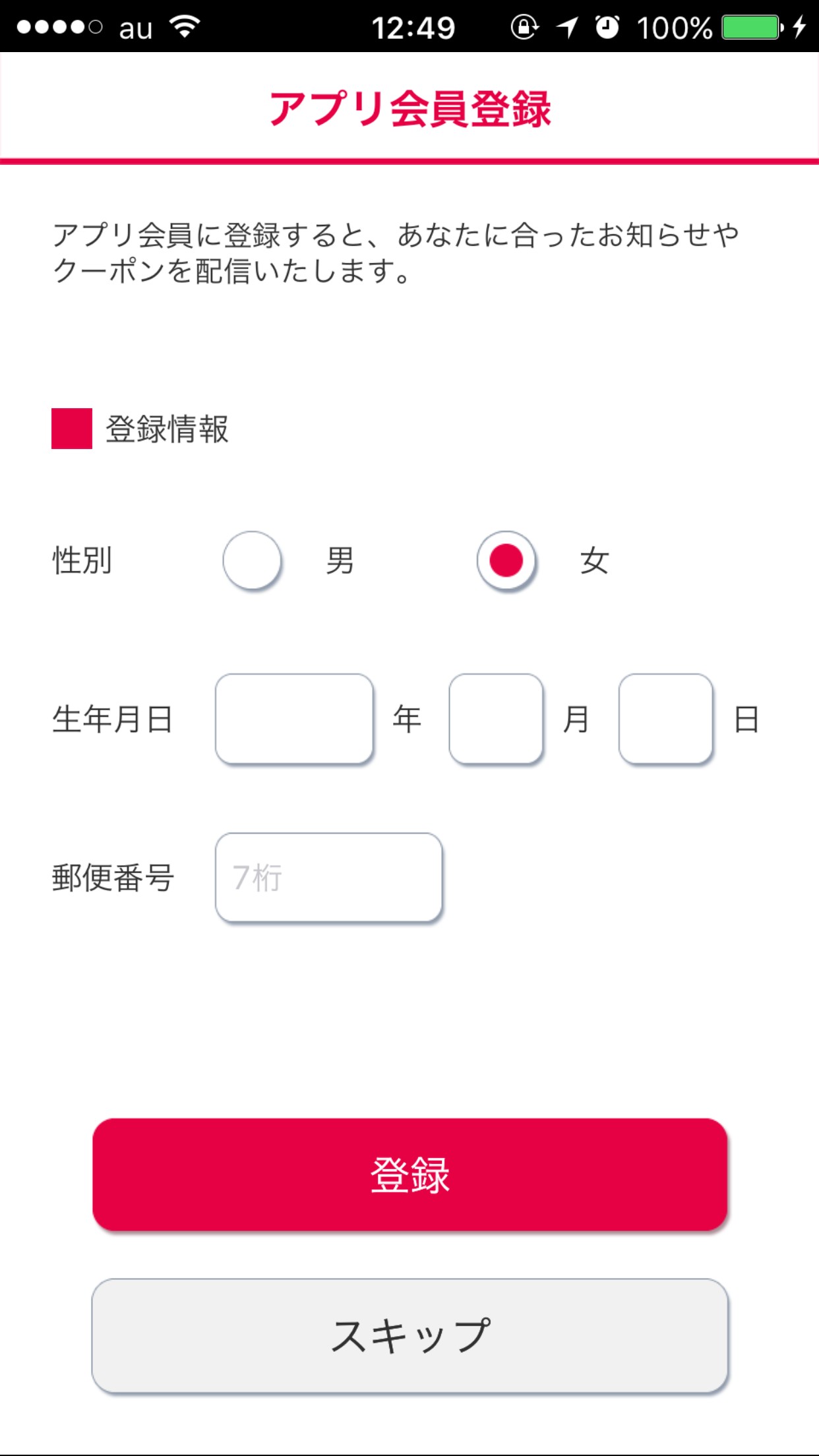 アプリをインストールして起動して、会員情報を入力すれば、スマホ上のポイントカードが作成されます。