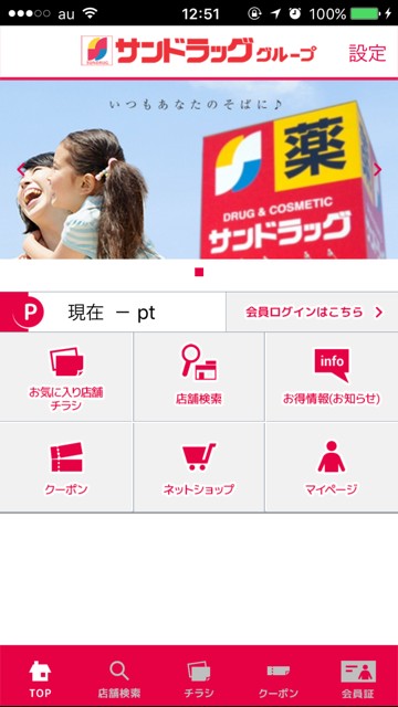 - 「サンドラッググループ公式アプリ」スマホにインストールするだけで楽々スマートにお得にお買い物