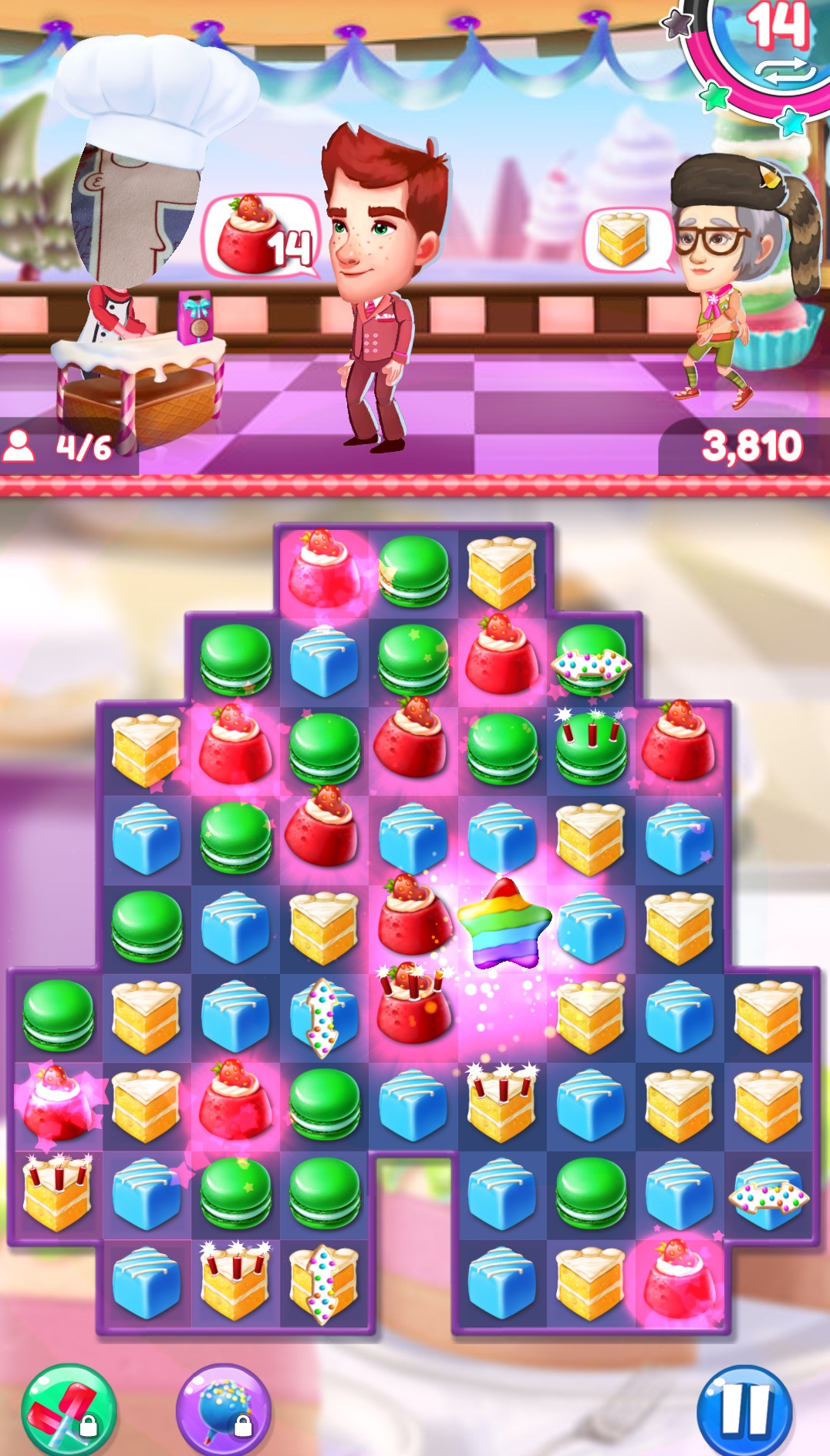 「Crazy Cake Swap」は、ケーキ屋さんになってお客さんの注文するケーキを消していく、ミッション攻略が魅力のパズルゲームになっています。