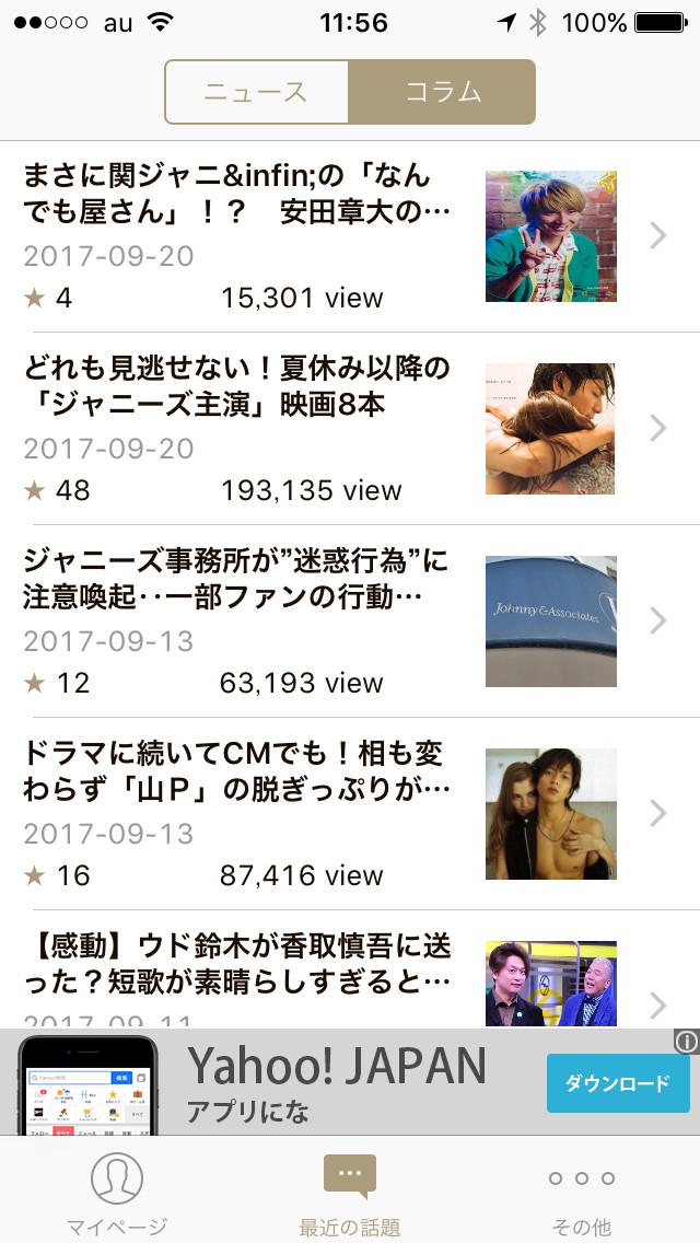 コラム機能ではネットでの反響を知ることができ、お気に入りの数や総合閲覧数が表示されているので、今話題の情報が簡単にわかります!
