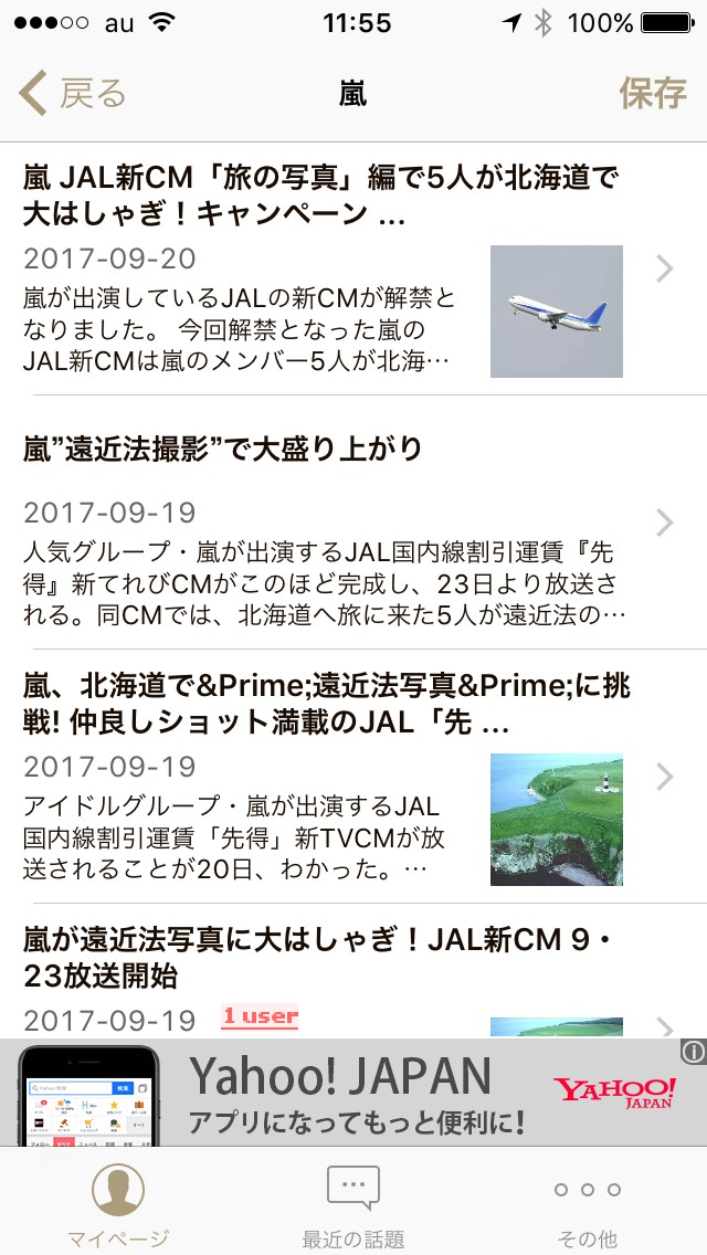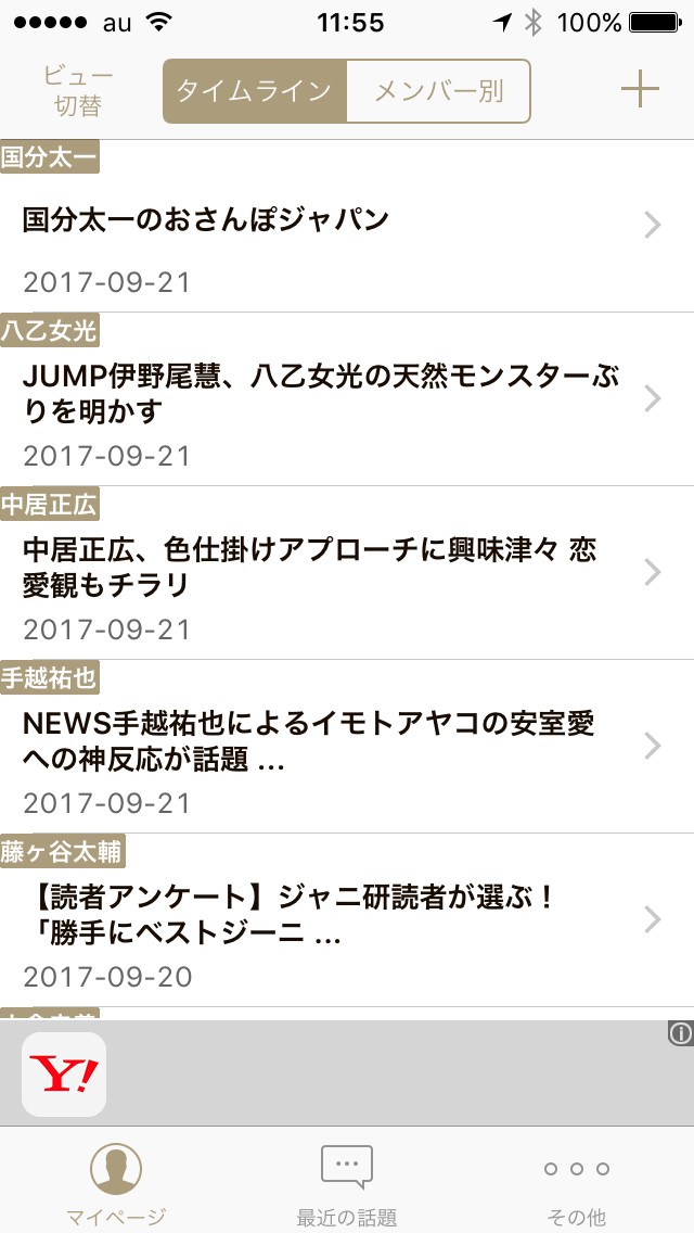 「ニュースのまとめ読みアプリ – ジャニーズ版」ではそんな方にも便利なマイページ機能があります。