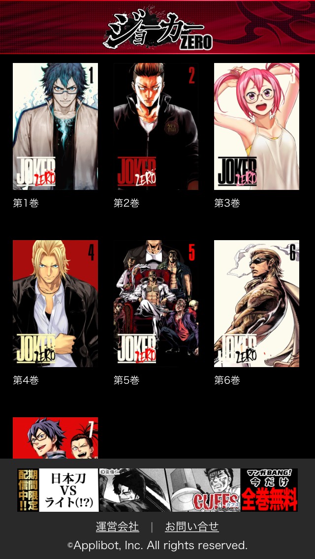 このアプリは数多くの漫画を取り扱う総合漫画アプリではなく、「【全巻無料】ジョーカーZERO~ギャングロード~完結編」というタイトル通り、1つの作品のみを取り扱った漫画アプリです。
