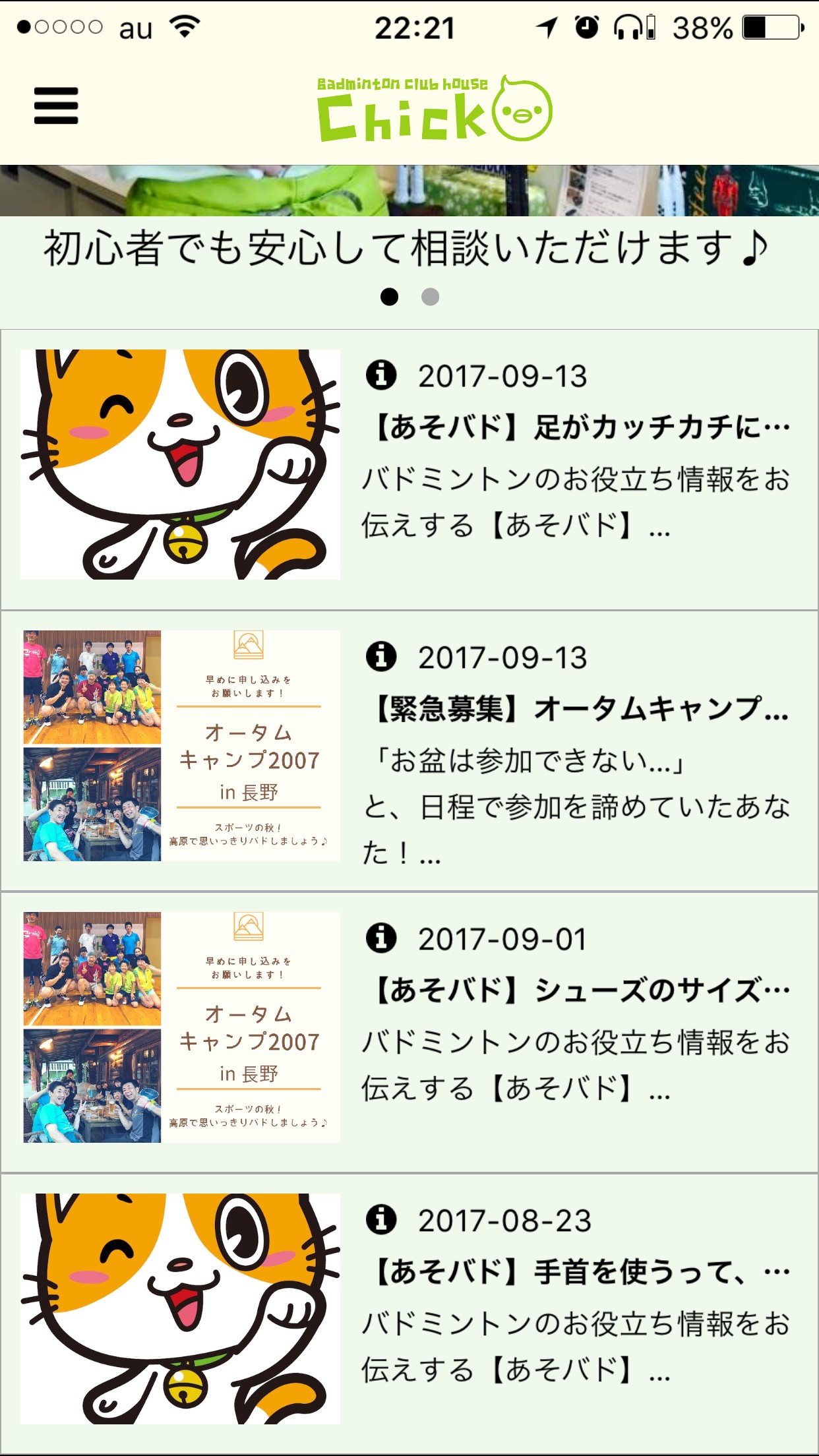 それでは「バドミントンクラブハウス チック公式アプリ」の機能をご紹介します。