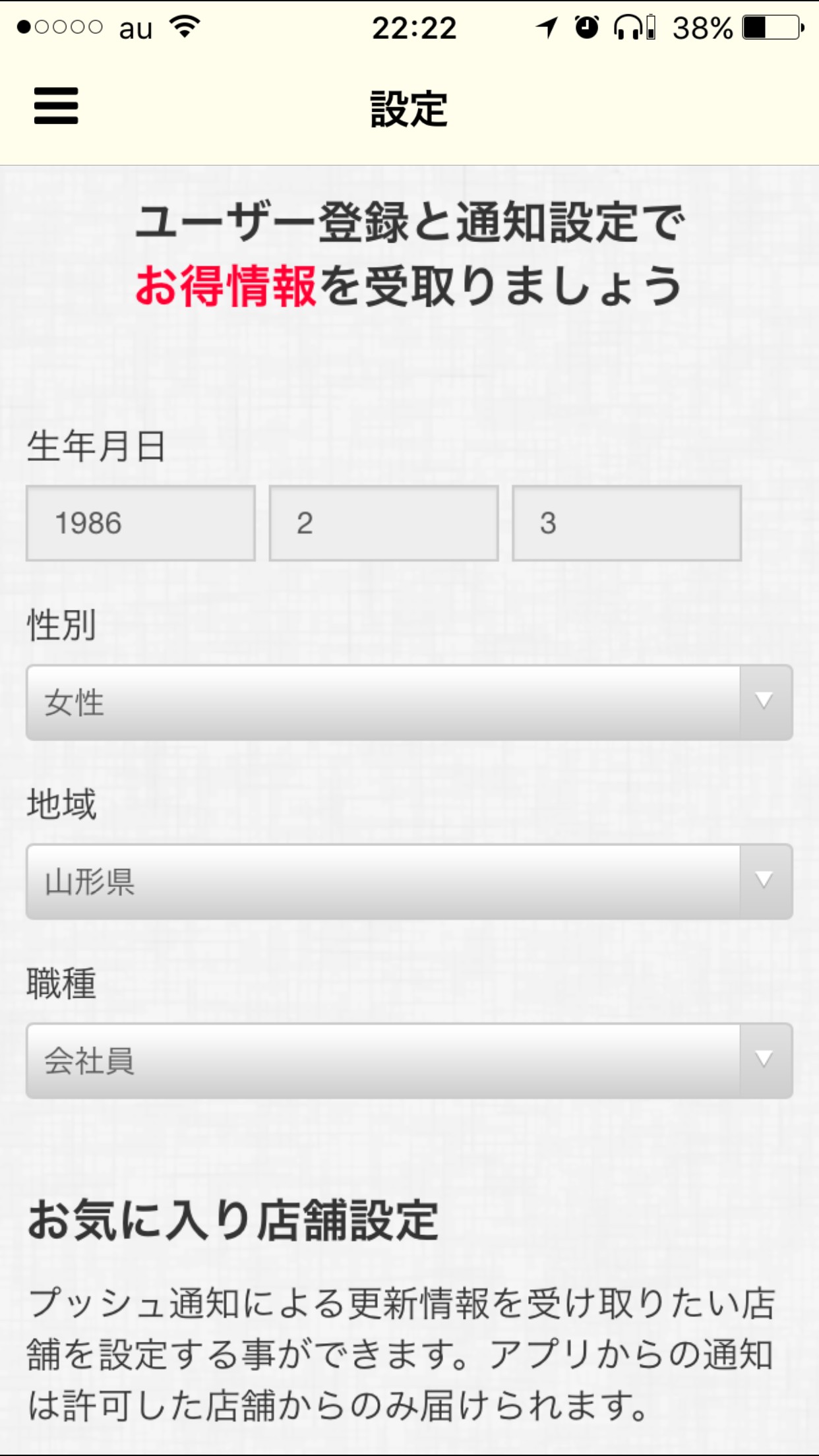 - アプリダウンロード後、初めて起動させると会員登録画面が表示