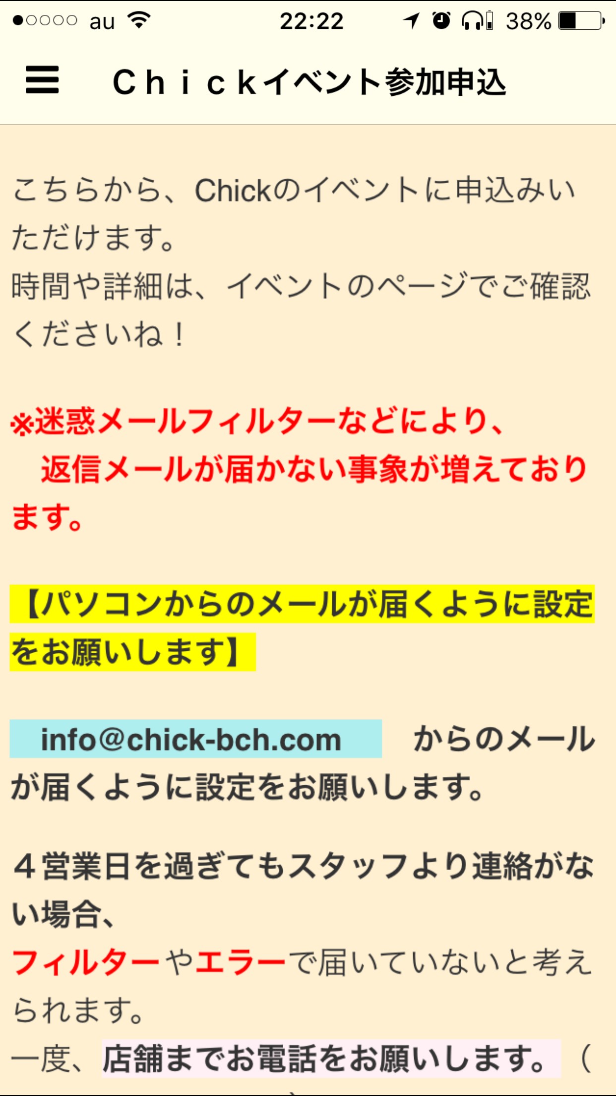 - 『イベント申し込み』画面でお名前やメールアドレスなどを入力
