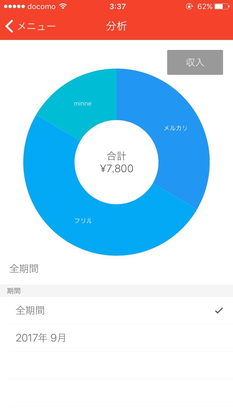 不要物をどのペースでお小遣いに換金できているのか、毎月のフリマ収支が一目でわかります。