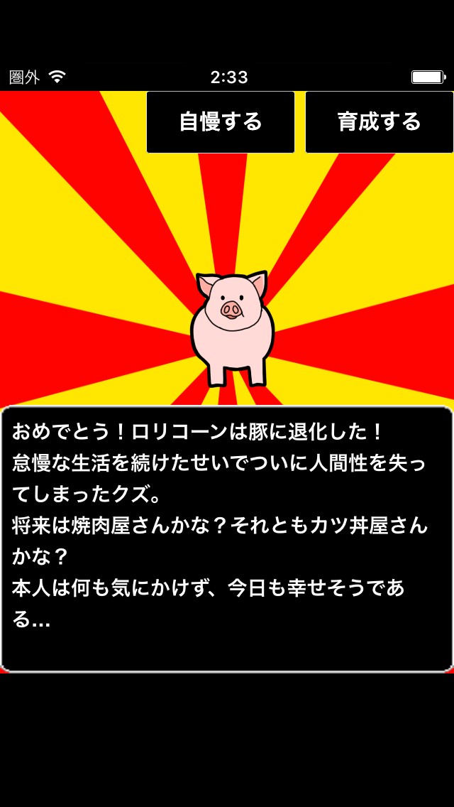 クズがキモータになりチェリーになりロリコーンになり、一体次は何に退化すのか?と心配していたらまさかの豚さん。