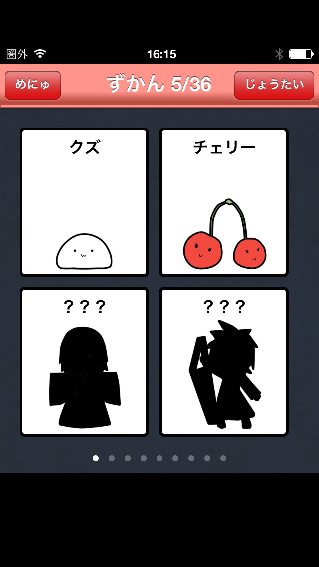 過去に退化したキャラクターは図鑑で確認できて、まだ登場していないキャラは黒い影になっています。