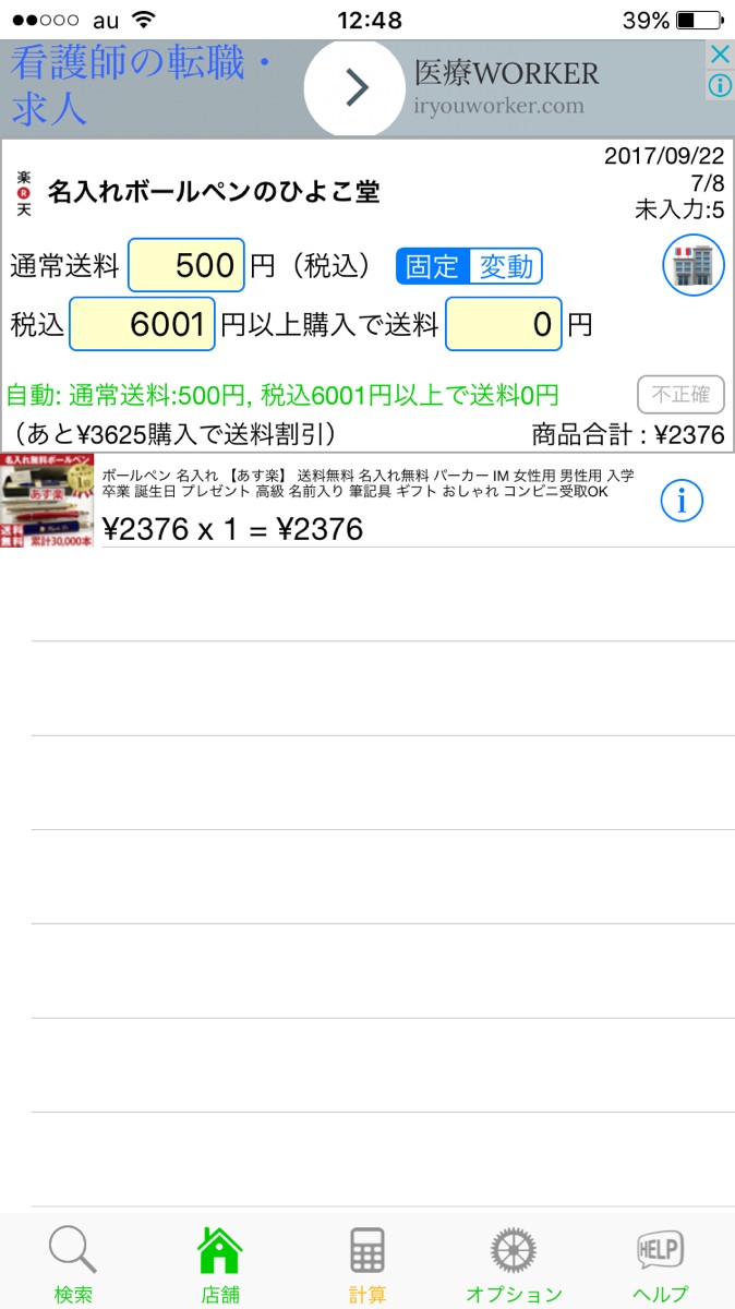 送料込みの価格を知りたい場合、未設定や違う地域に設定をしていると正しい価格が表示されなくなってしまいます。