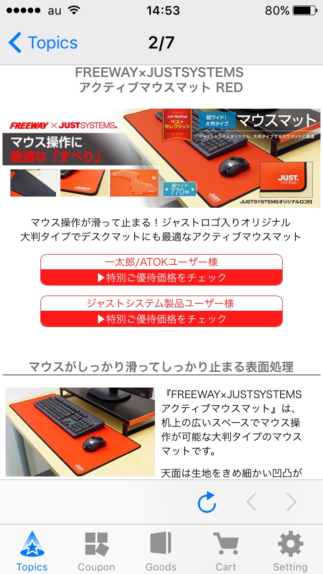 目玉商品の並ぶ「トピックス」から豊富な商品が載っている「商品」欄まで、一つ一つの商品の情報を詳細に載せてくれているため、こだわりの商品を買いたい、本物を買いたい、そういうときにもオススメのアプリです。
