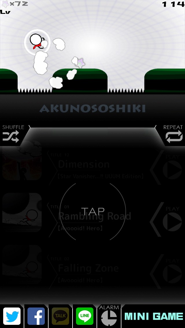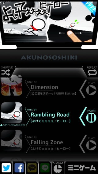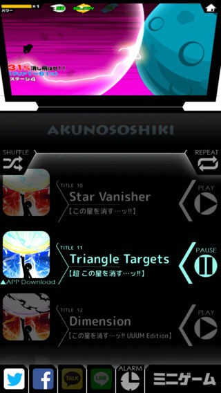 このアプリの特徴は簡単なゲームを遊べること、ゲーム以外にもゲームに関連する音楽を使って実用的にBGMやアラームとして使えるとことです。あくのそしきのファンにとってはとてもうれしい機能ですね。
