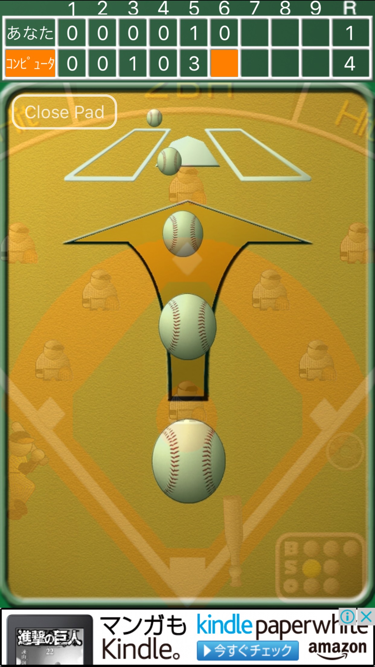 投球パッドで操作後、打者にボールが届く前に「消える」ボタンをタップすることで、