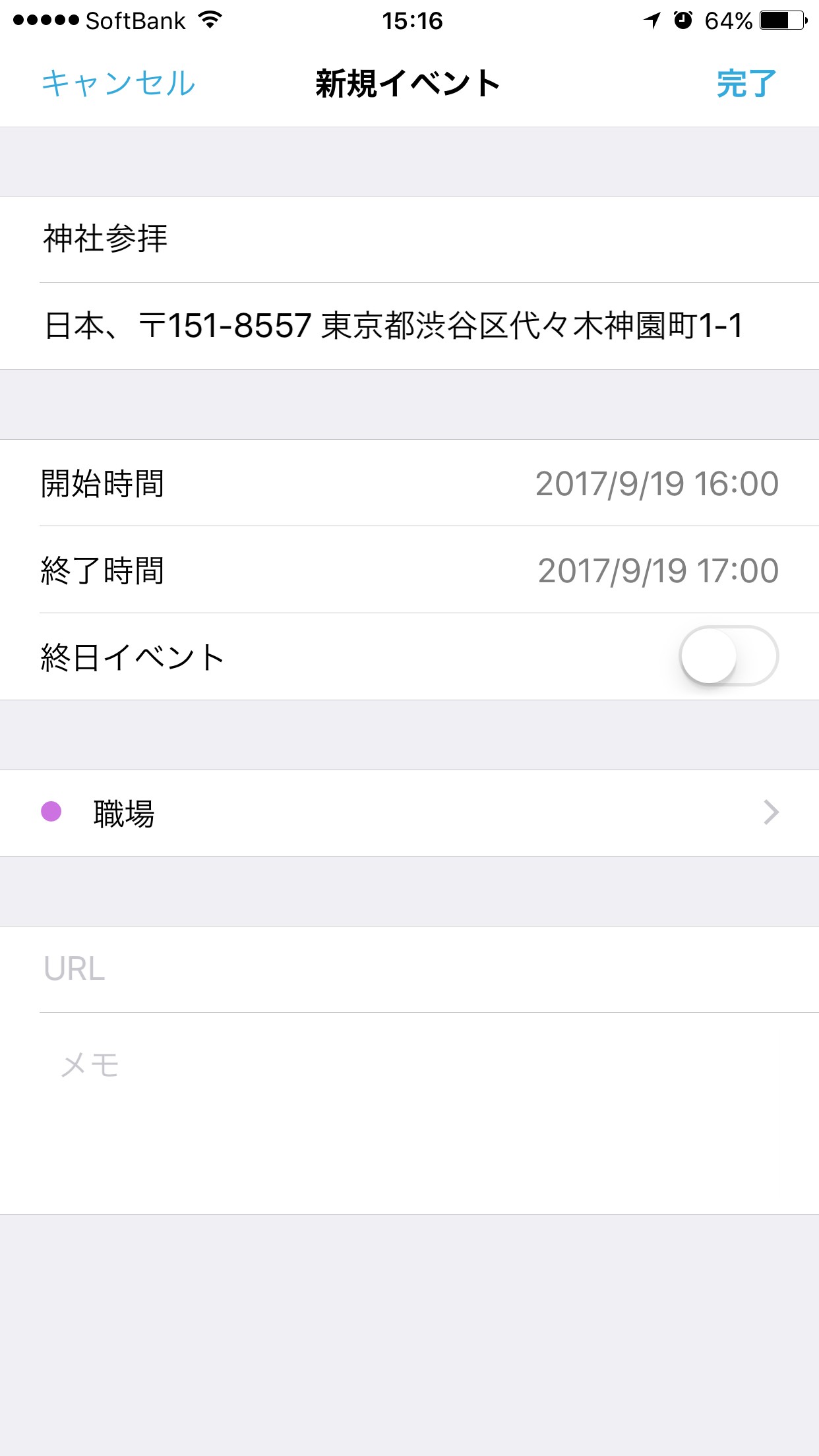 スケジュール内のイベントをタップすることで、登録済イベントの詳細画面が表示されます。