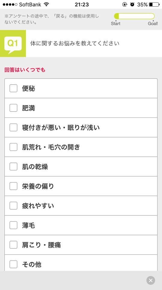 3.まずはかんたんアンケートに答えます。この情報などを元に次のアンケートが配信されるのを待ちます。