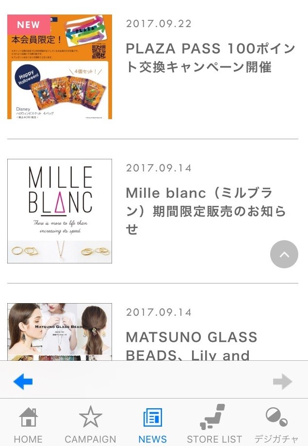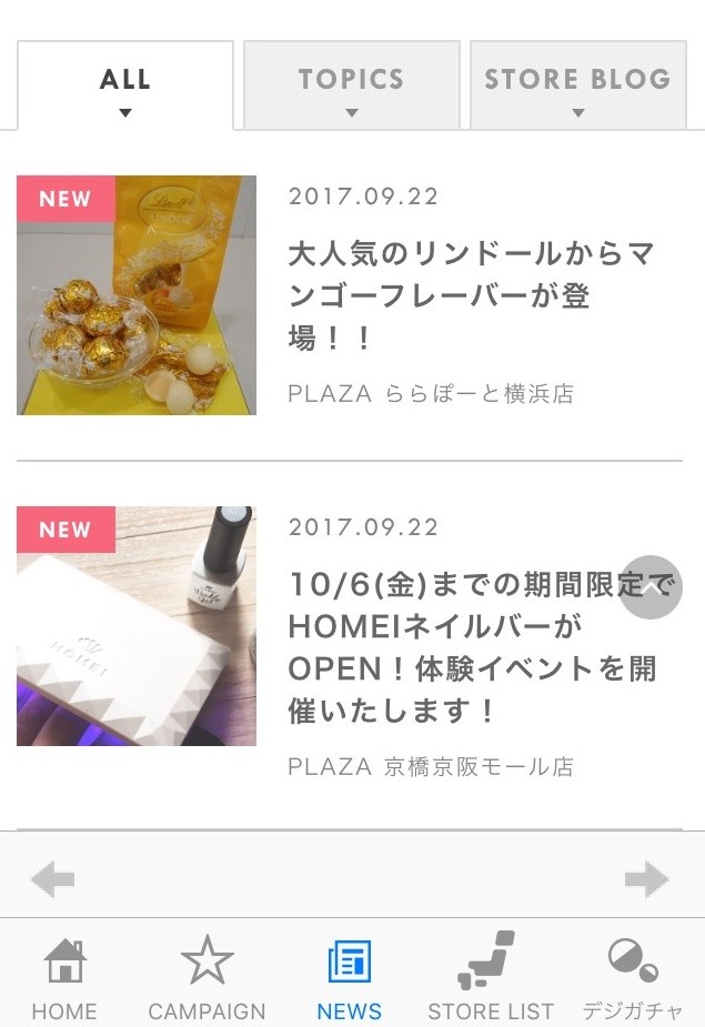 さらに、PLAZAのニュースやキャンペーン情報を見ることができます。