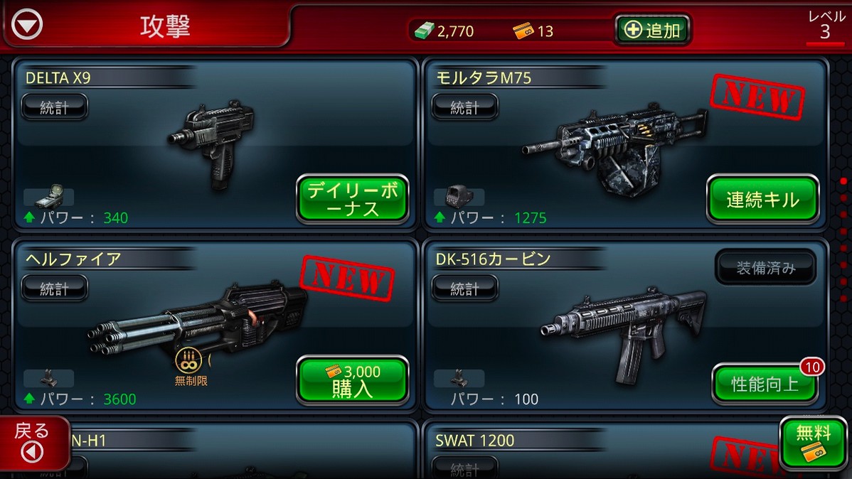 戦闘中、相手の弾を何度も受けてしまうと、体力ゲージがどんどん減っていきゲームオーバーになってしまいます。医療パックを使用することで体力を回復させることができますから、ピンチのときには購入してみるもの良いかもしれません。