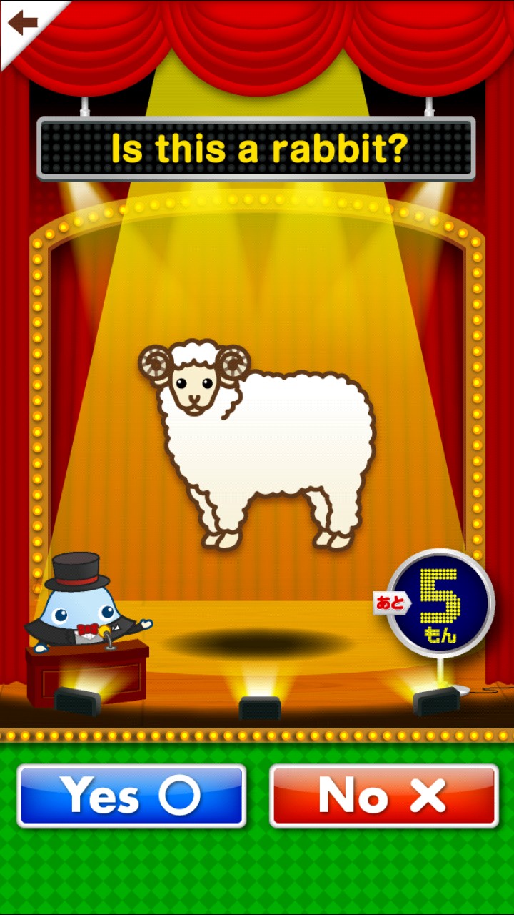 他のコンテンツもだいたい同様で、たとえば「えいごのひょうげん」なら、イラストに関して音声と文字で繰り出されるワオっちの質問に耳を傾けて、しっかりと内容を理解したうえで「○」か「×」で回答しなければなりません。