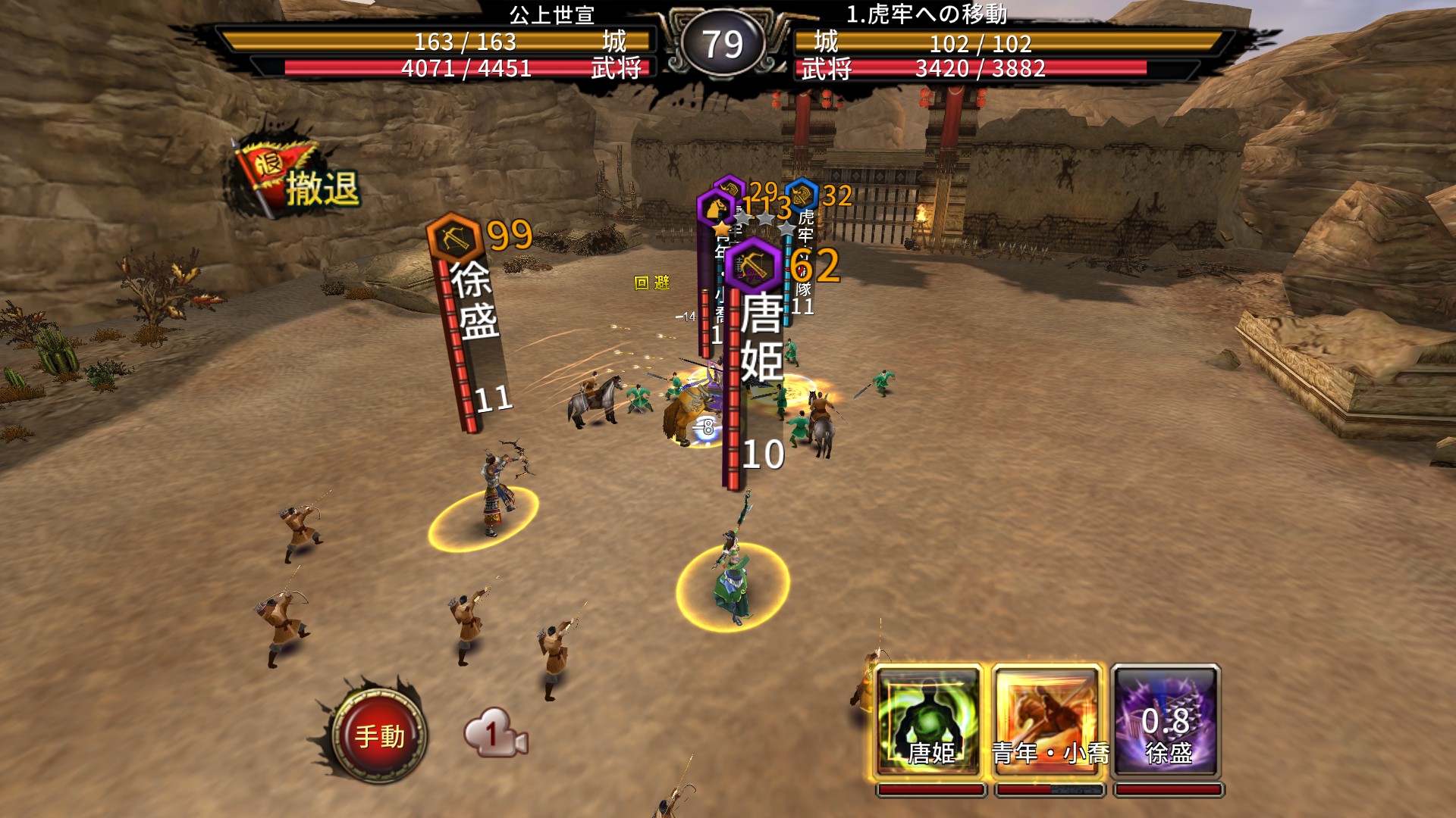 プレイヤーの介入要素は各武将の持つスキルの発動!とバトル前の陣形や計略!!