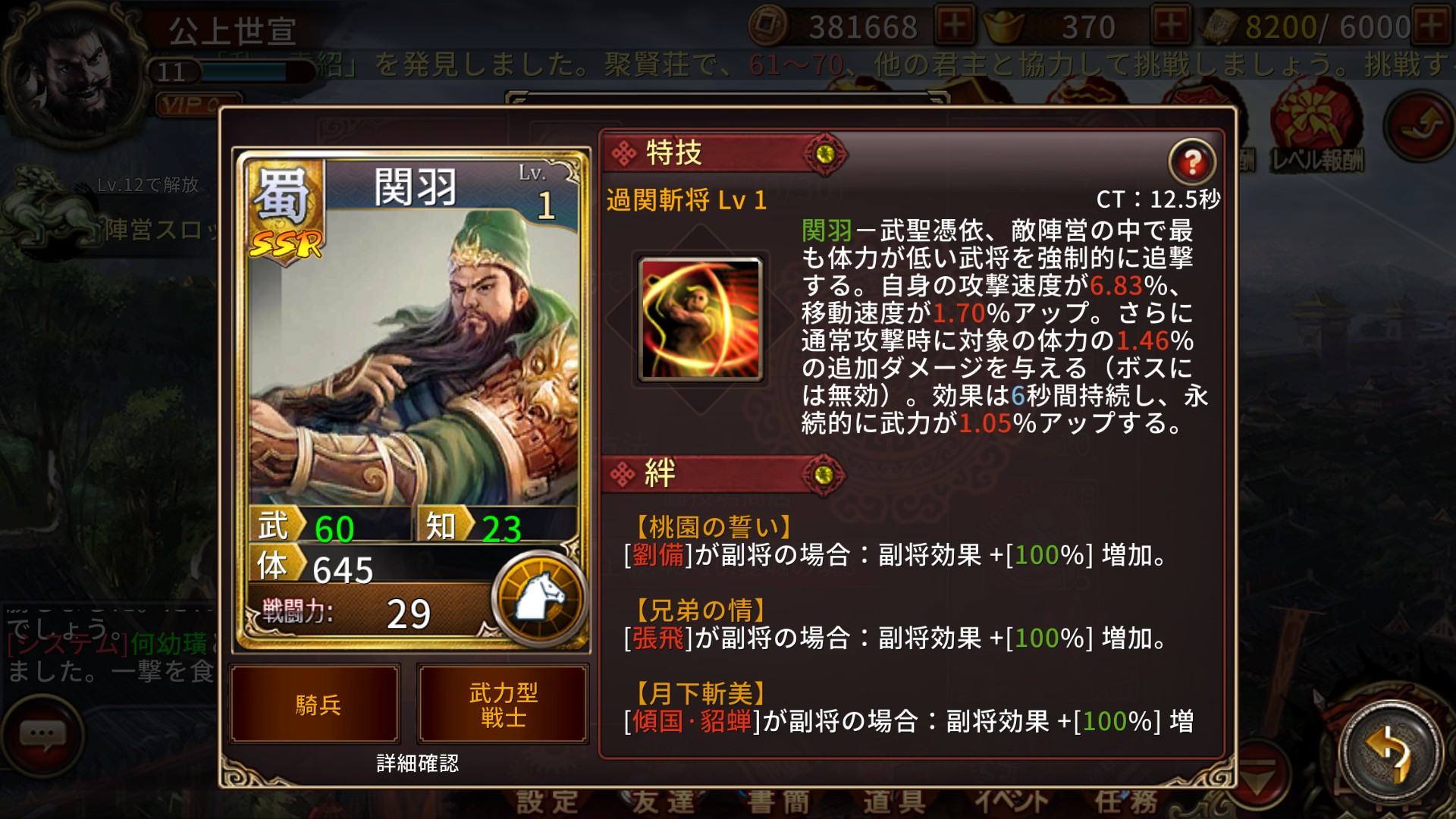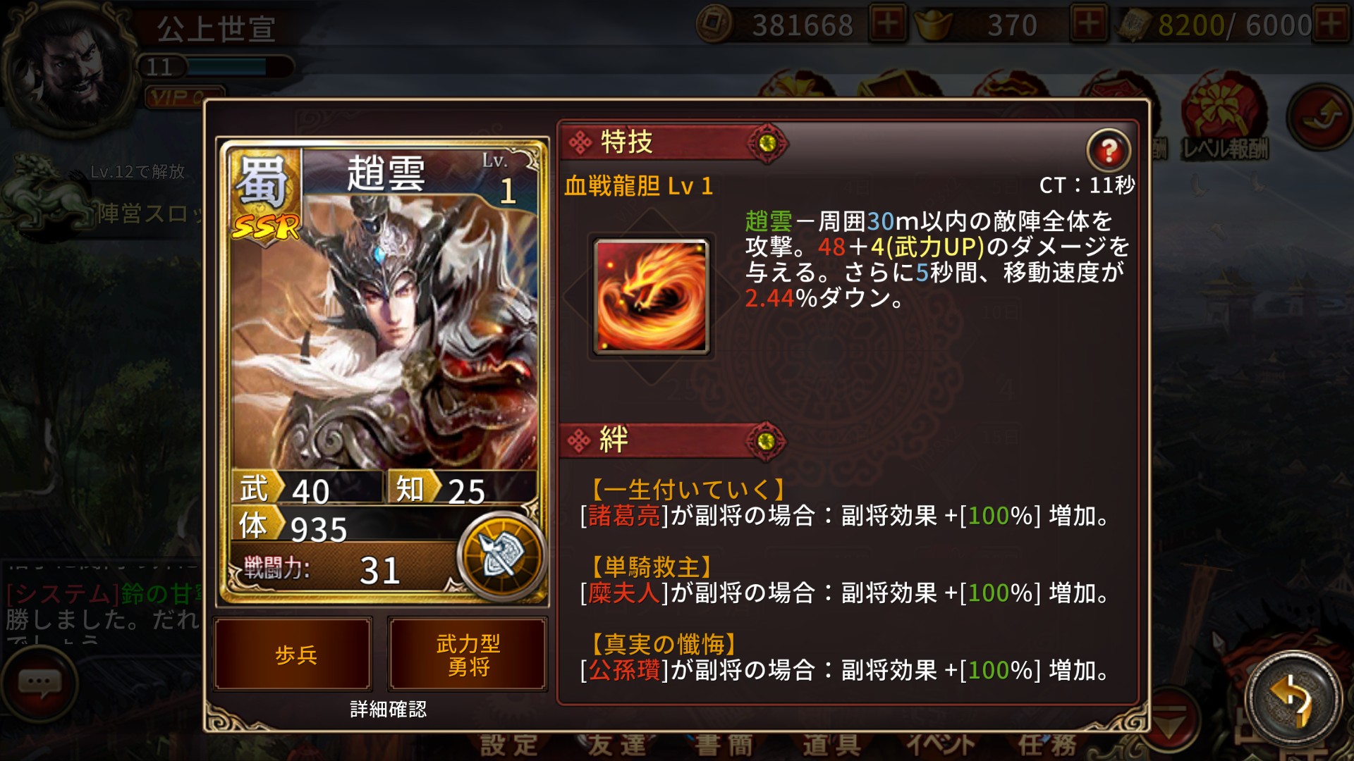 武将は進化することで武将の特性を強化されたり、追加されたりします。