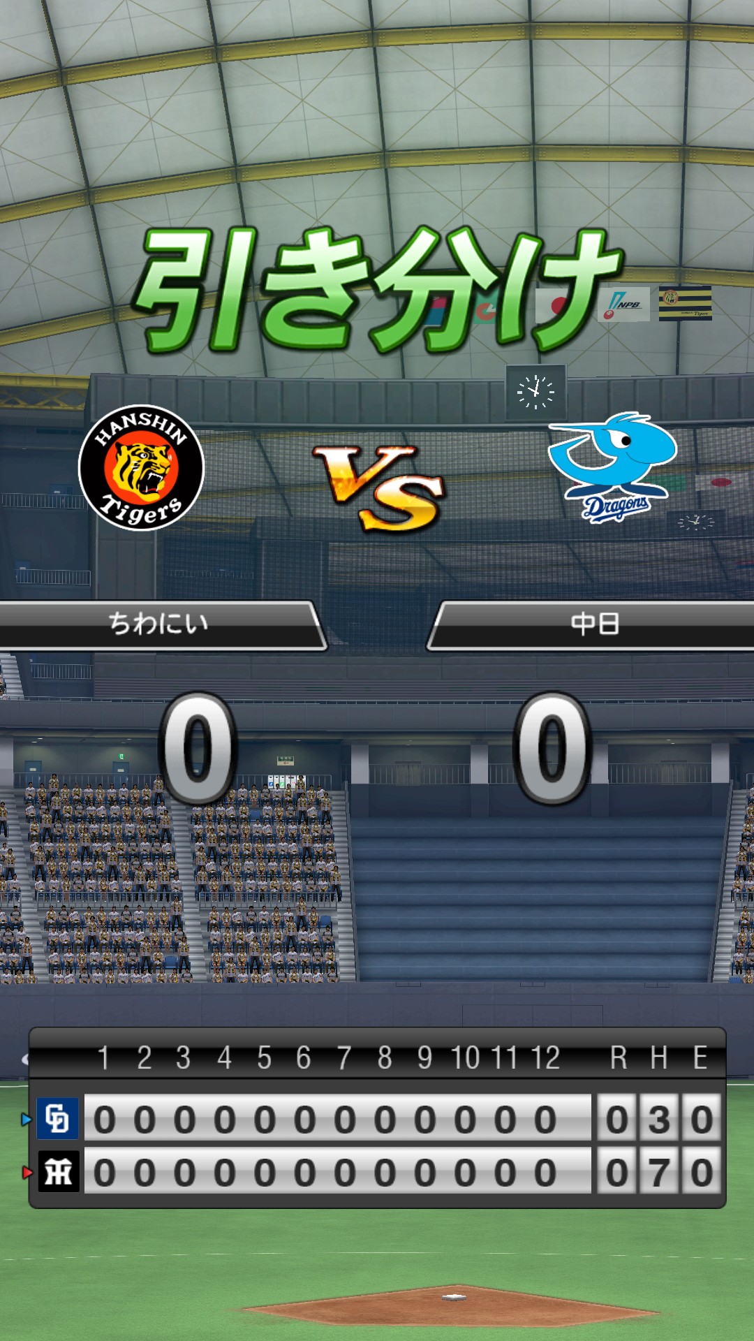 自動モードに設定していれば、あなたのピッチャーまたはバッターとしての出番が終われば、試合は自動で進みます。9回で決着がつかなければ延長戦に入りますが、それでも決着がつかなければ引き分けとなます。