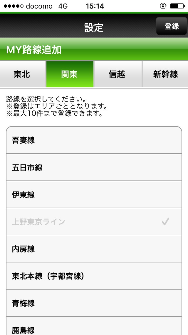 しかもこの「JR東日本 列車運行情報 プッシュ通知アプリ」では、最大10の路線を登録することが出来ますので、JR東日本のエリアでよく出張があるビジネスマンにも強い味方になるでしょう。